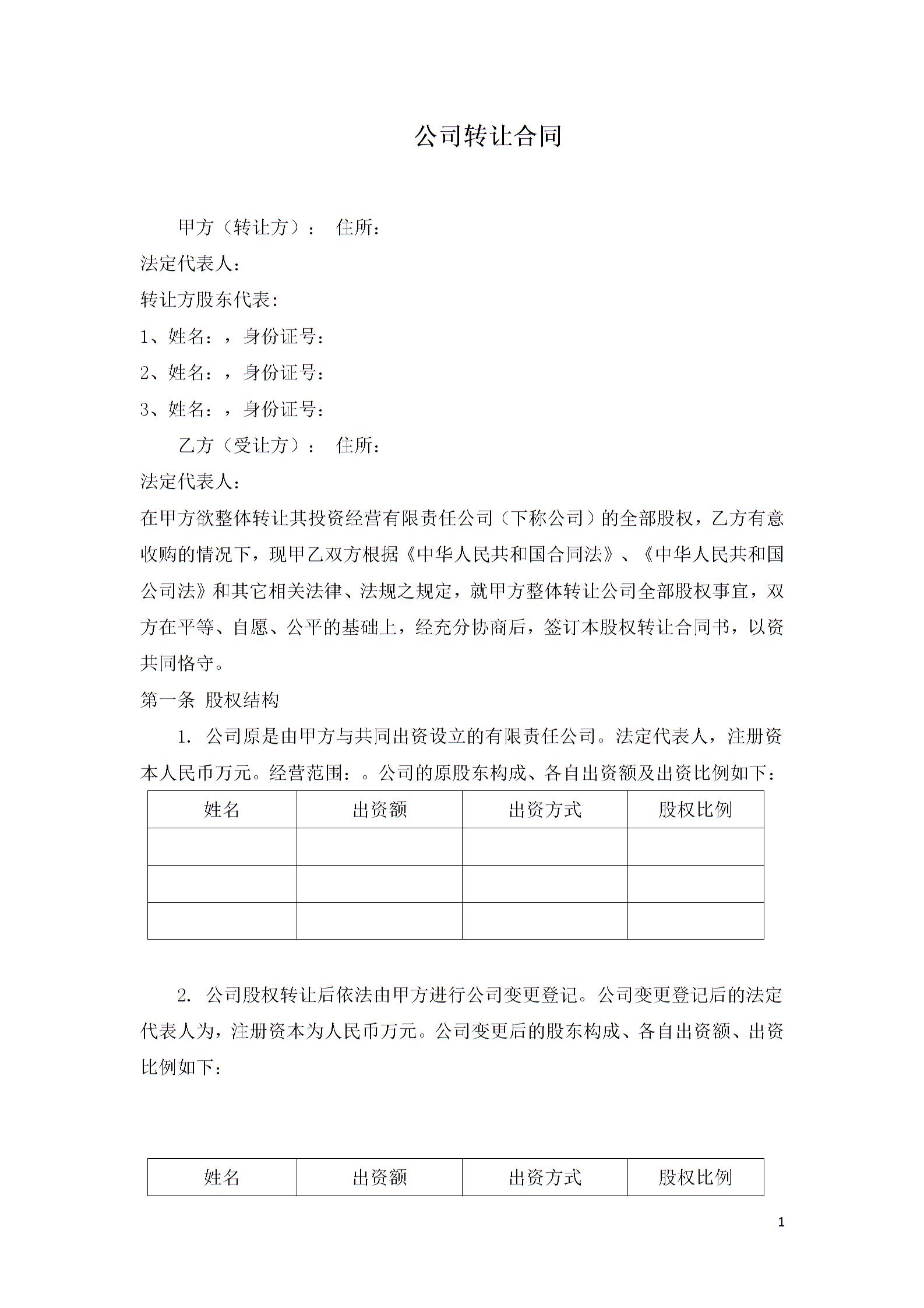 公司转让合同模板