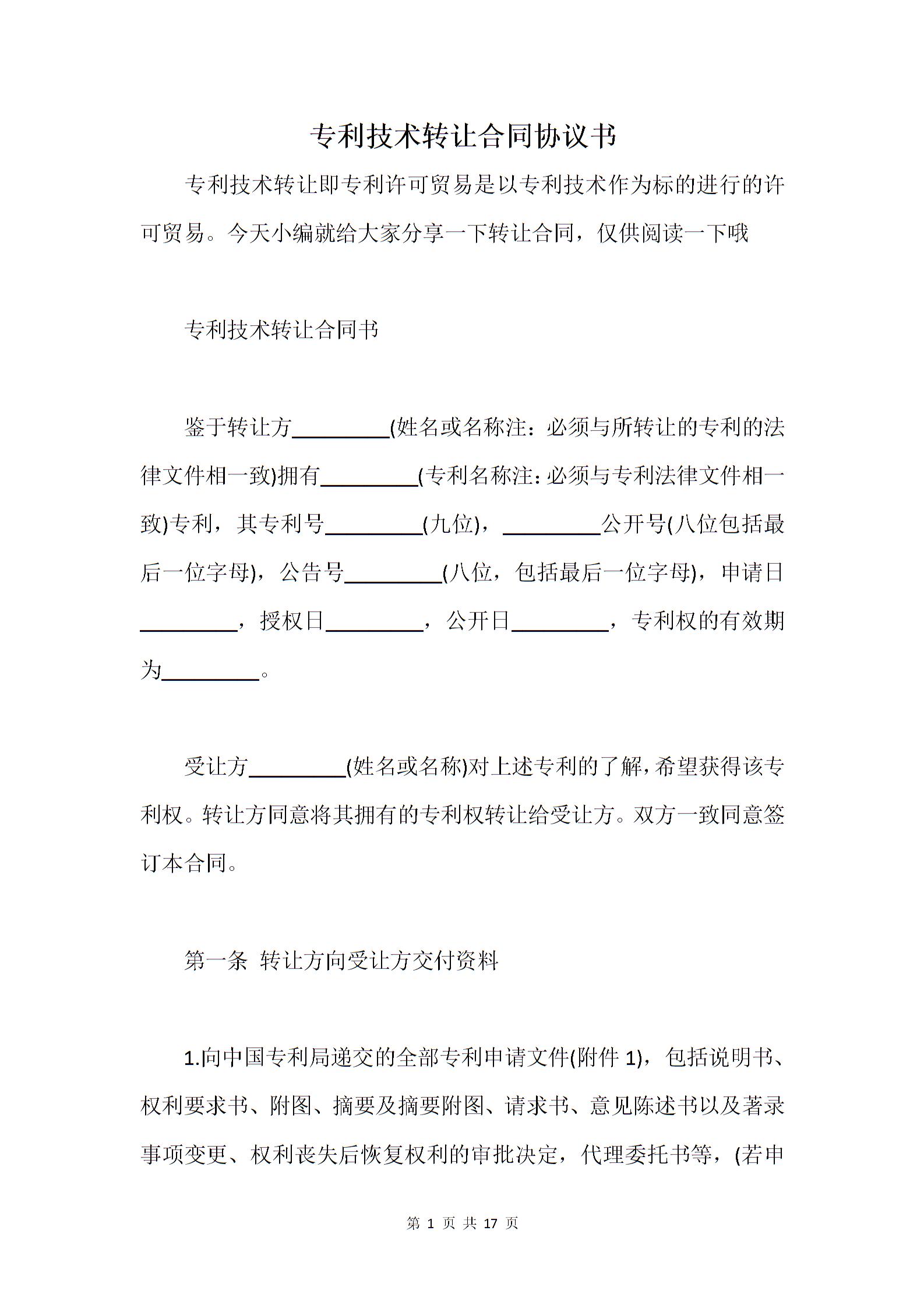 专利技术转让合同协议书