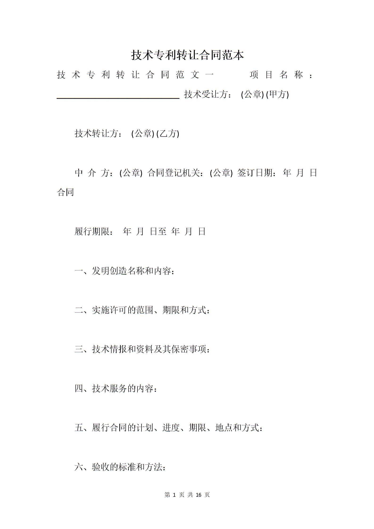 技术专利转让合同范本