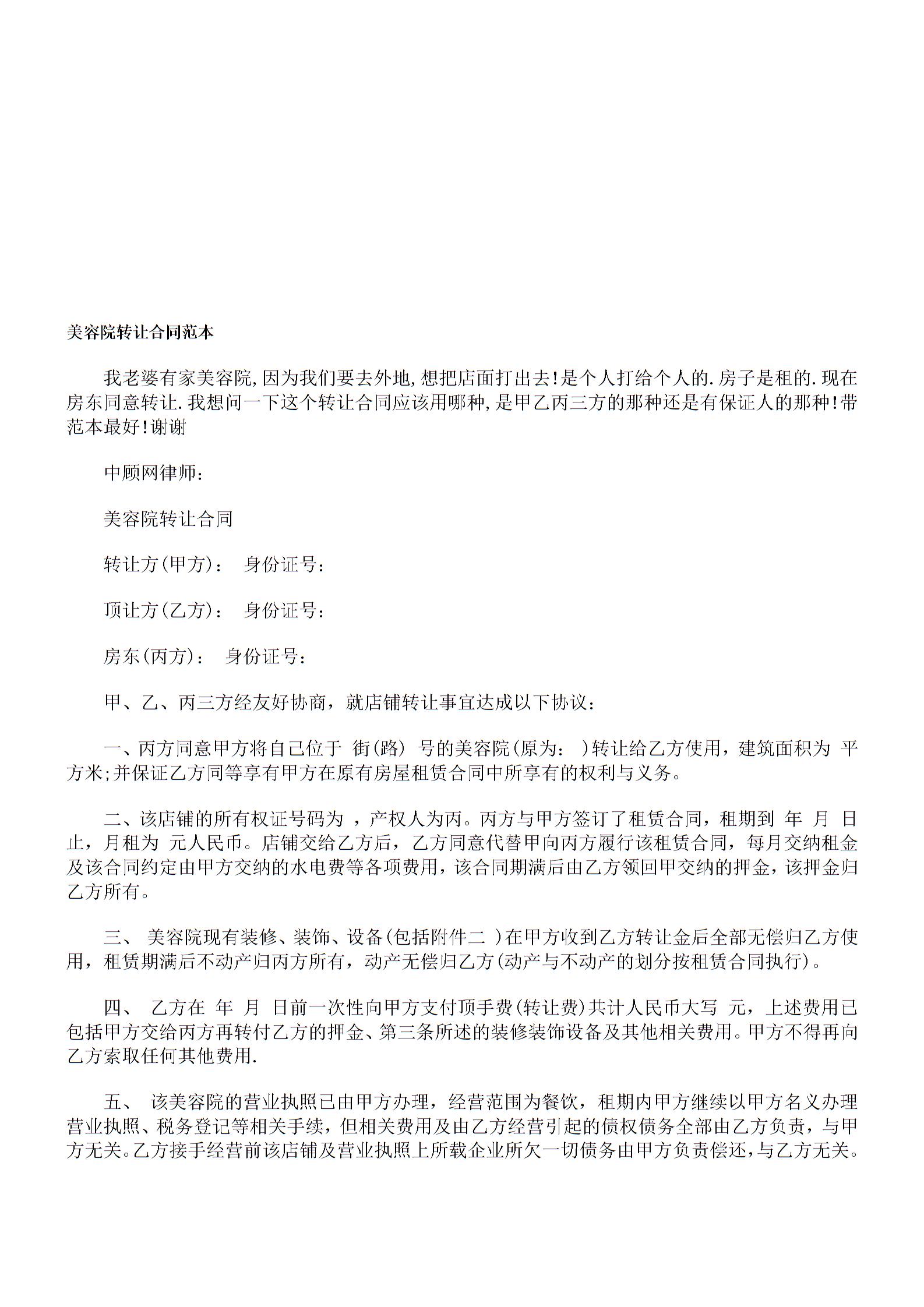 (2)美容院转让合同范本