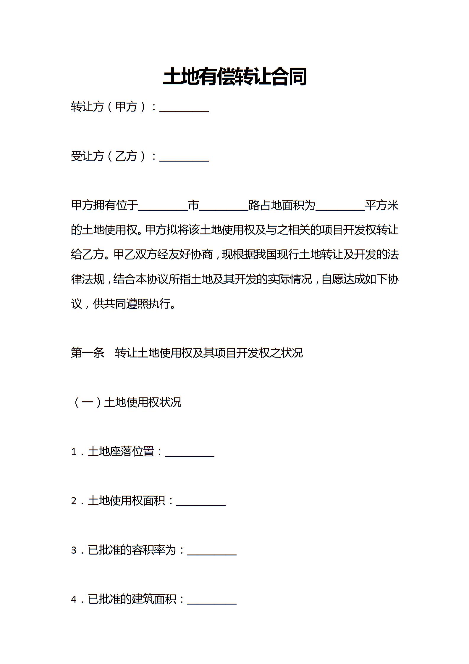 土地有偿转让合同