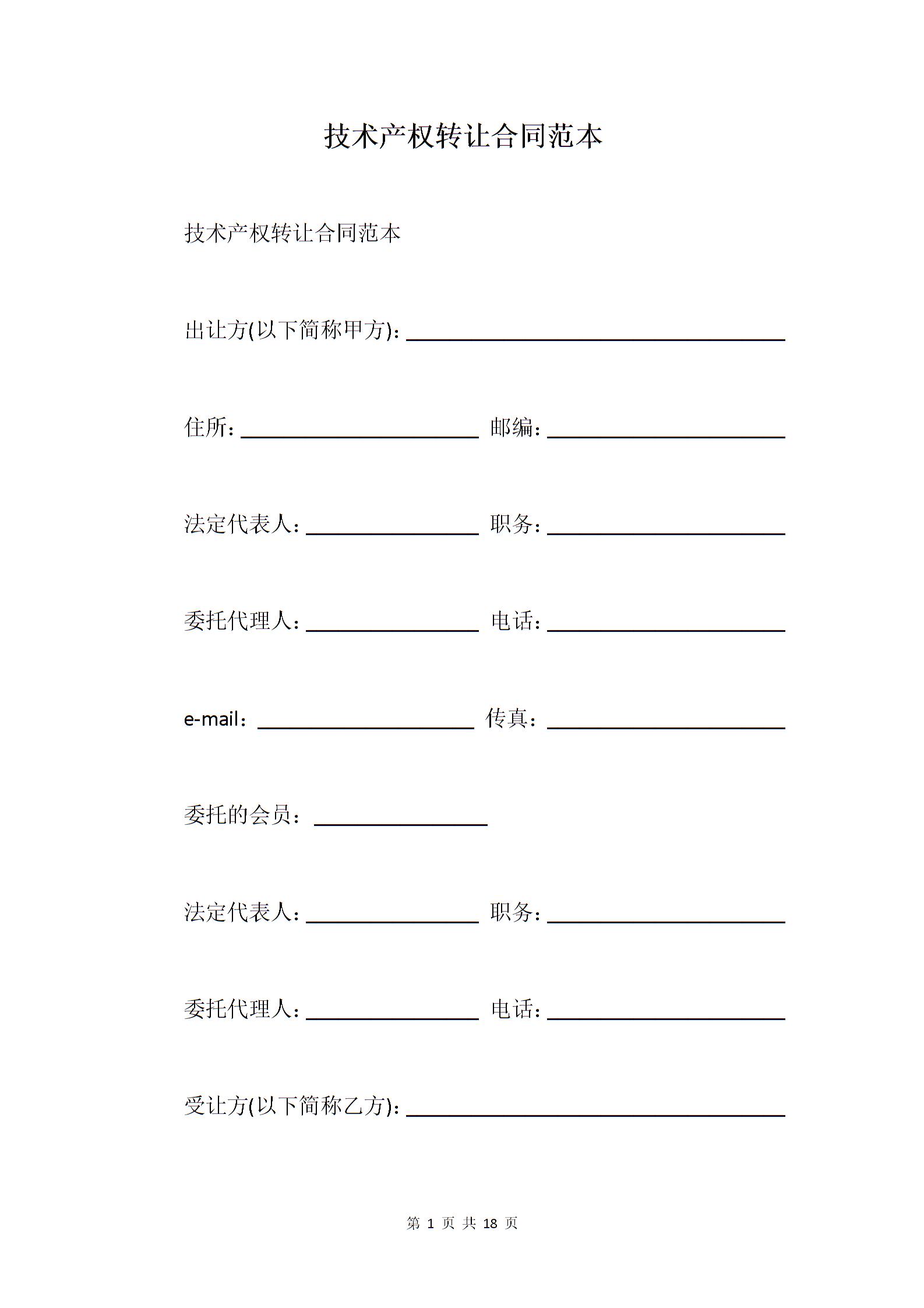 技术产权转让合同范本
