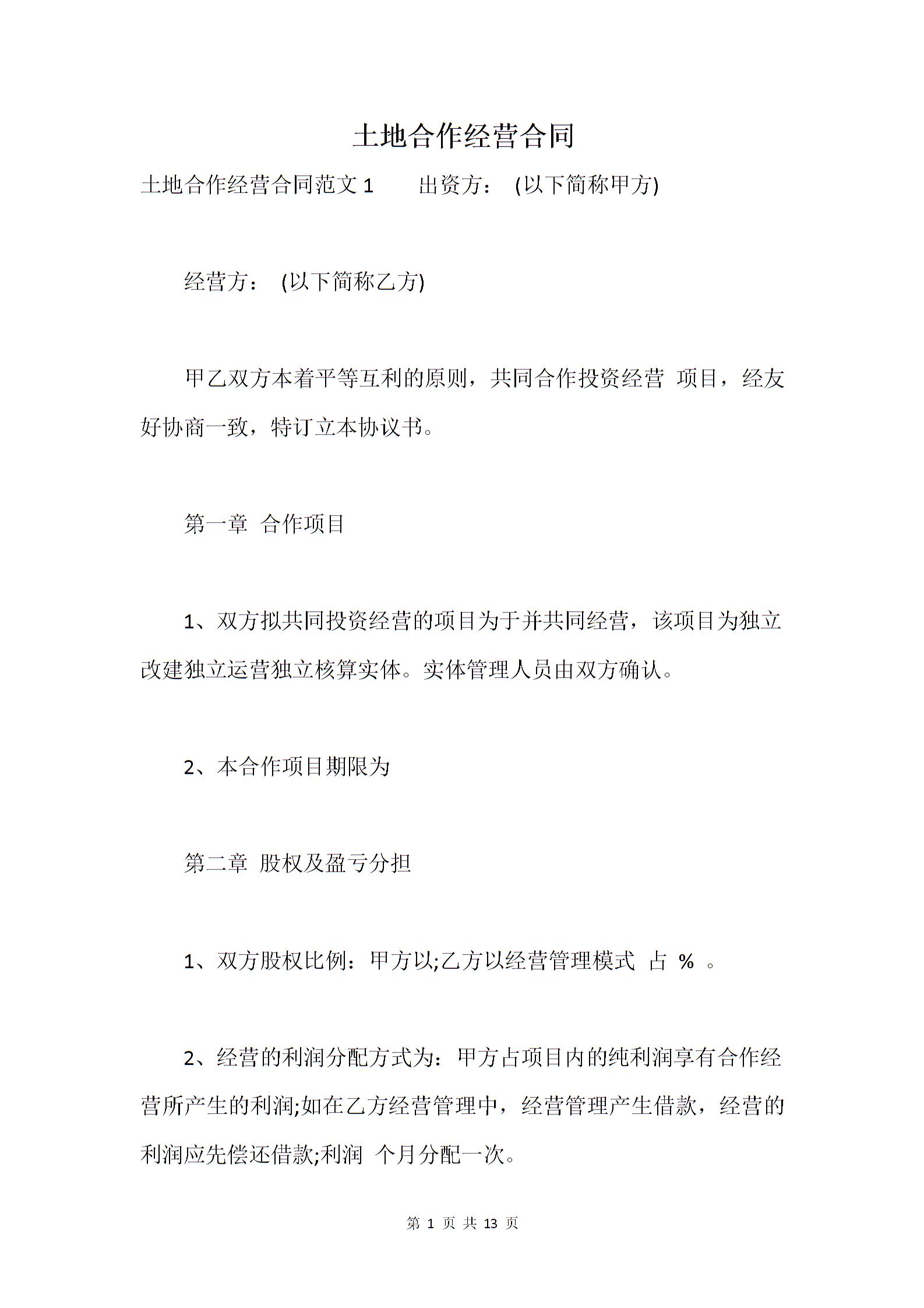土地合作经营合同