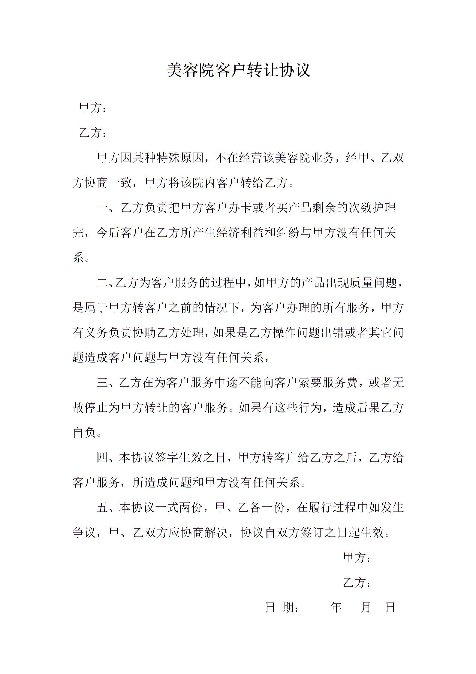 美容院转让客户协议