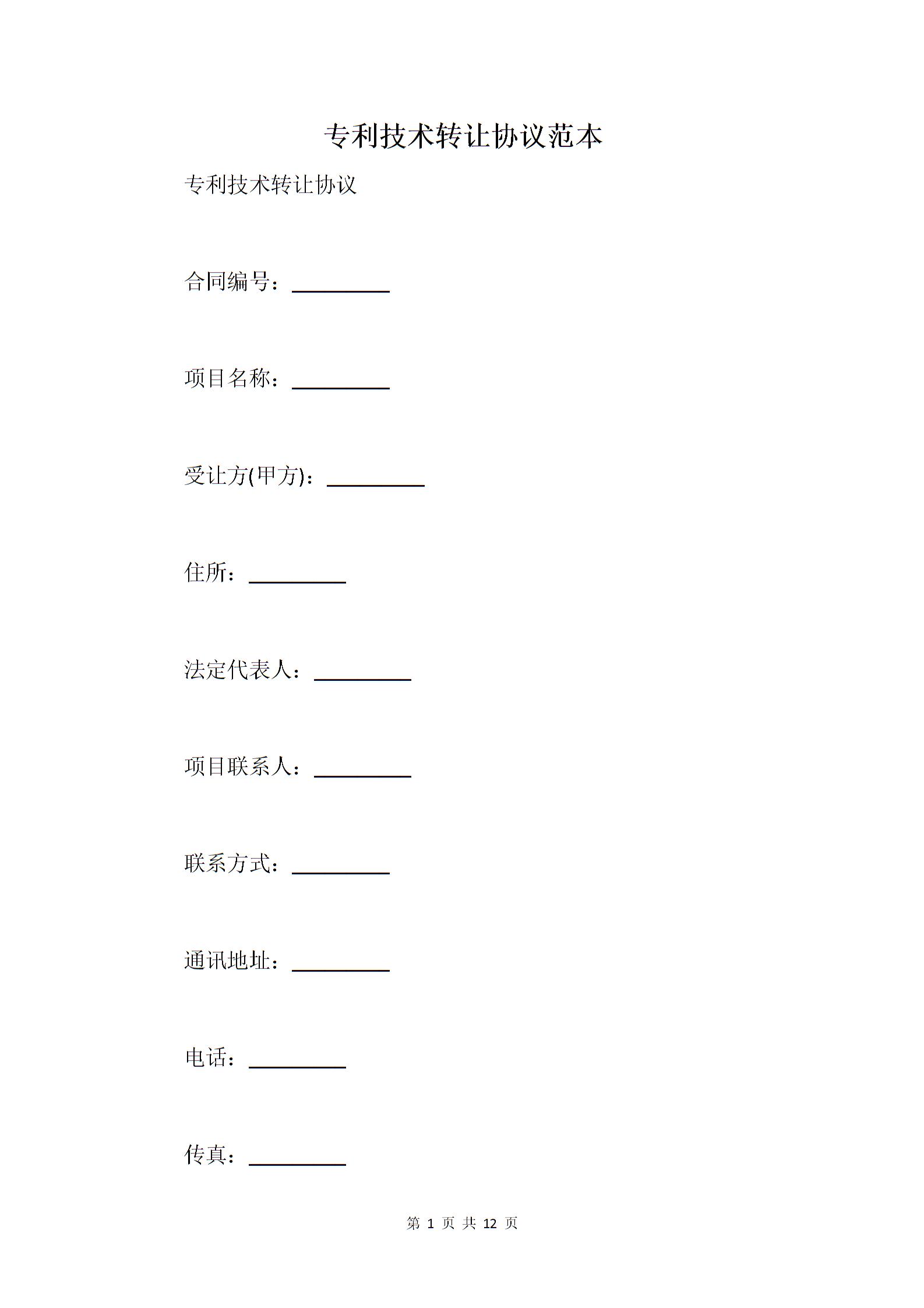 专利技术转让协议范本