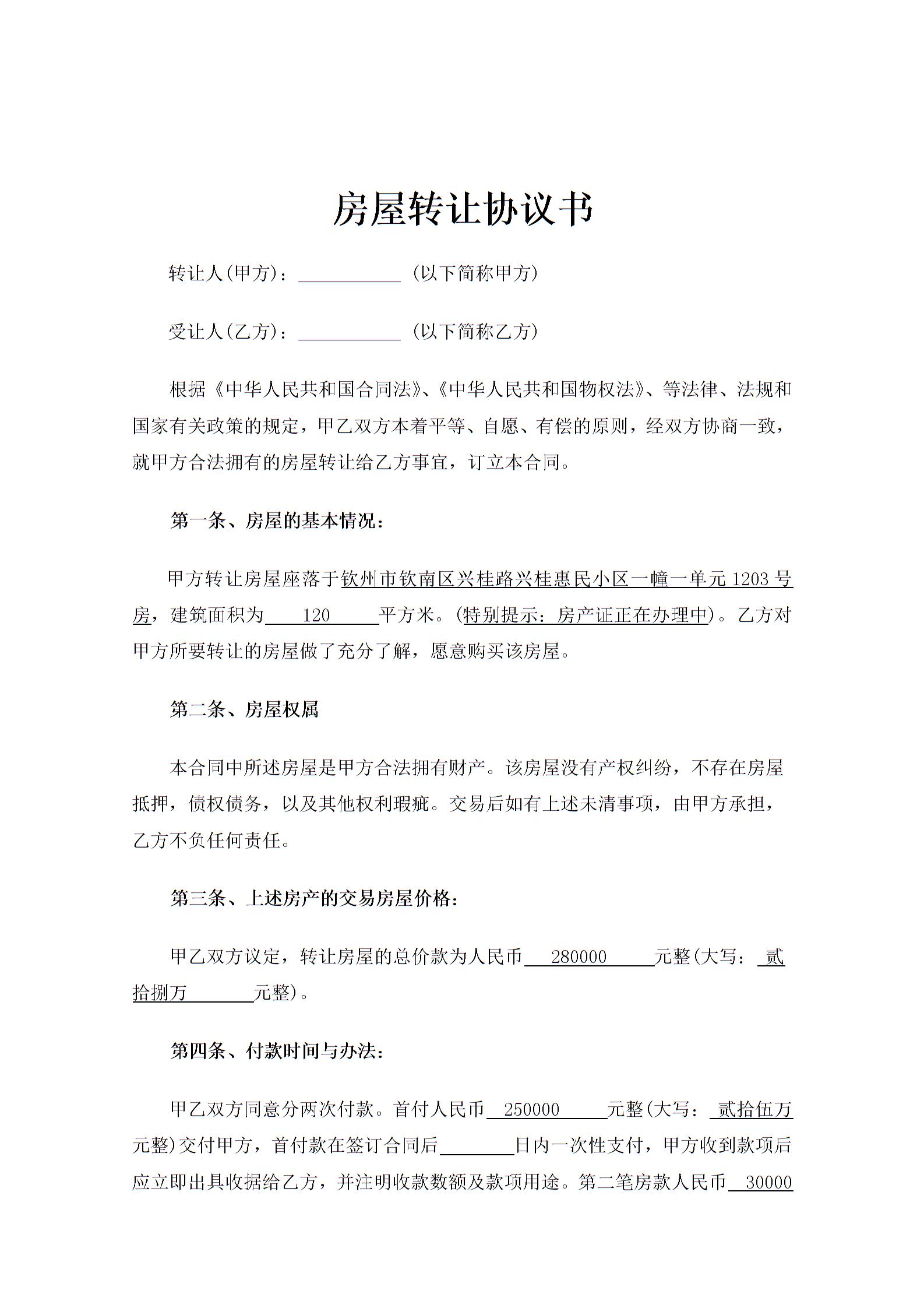 房屋转让协议书