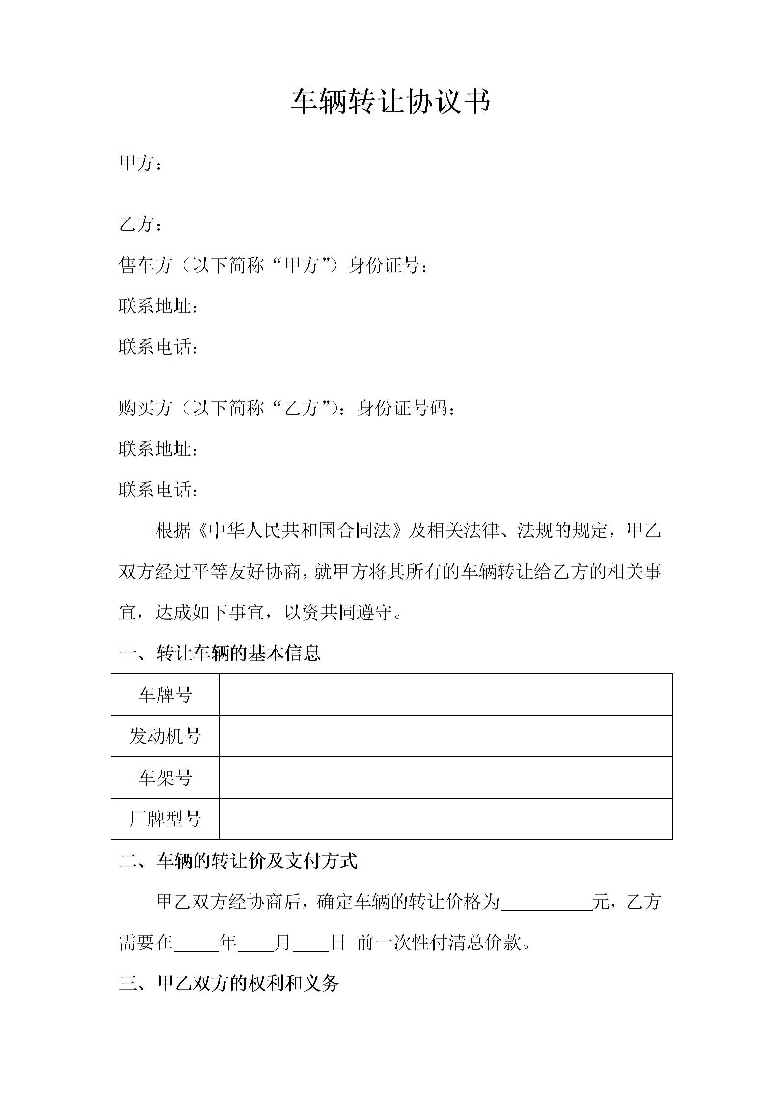 车辆转让协议