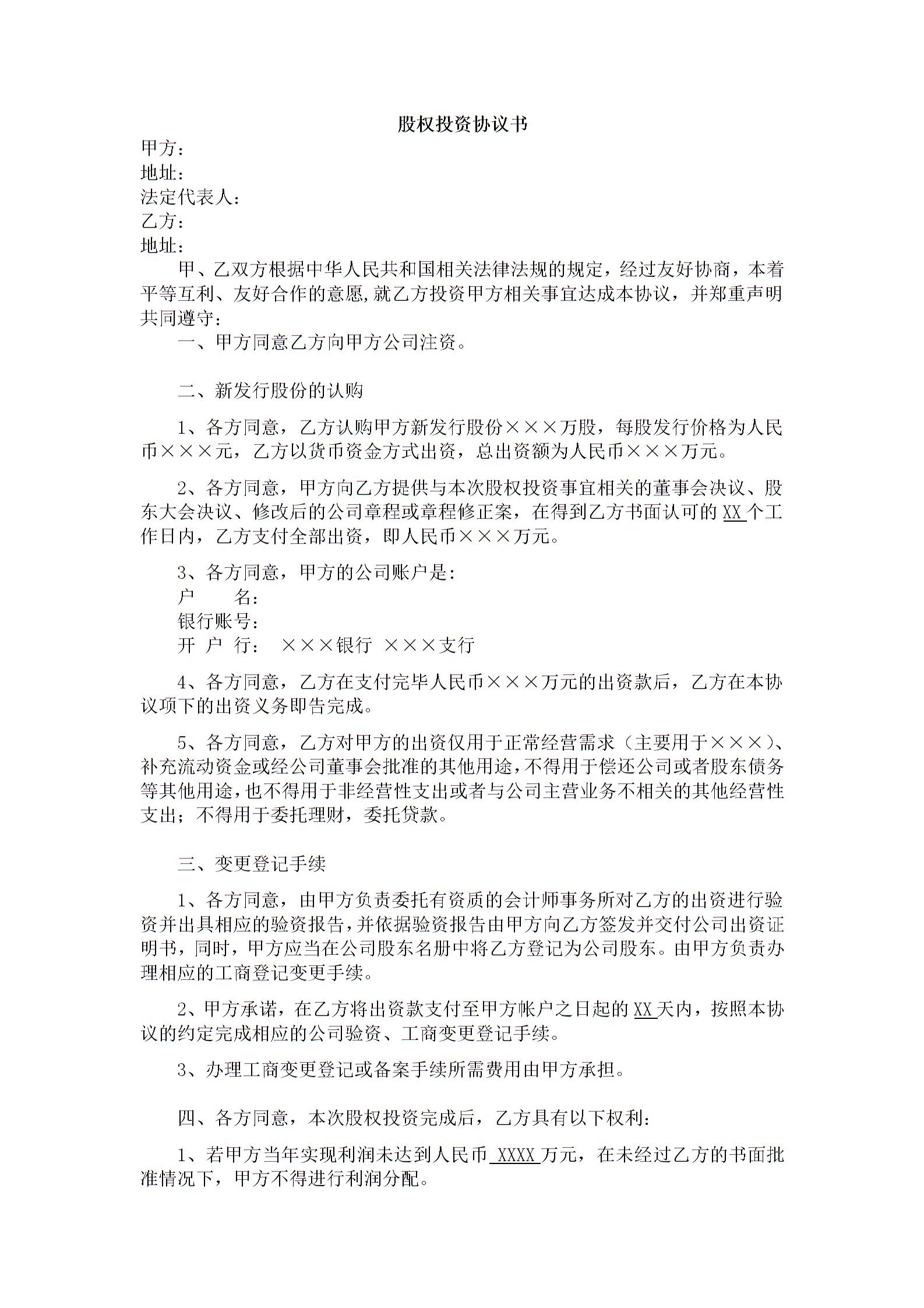 实用版股权投资合同
