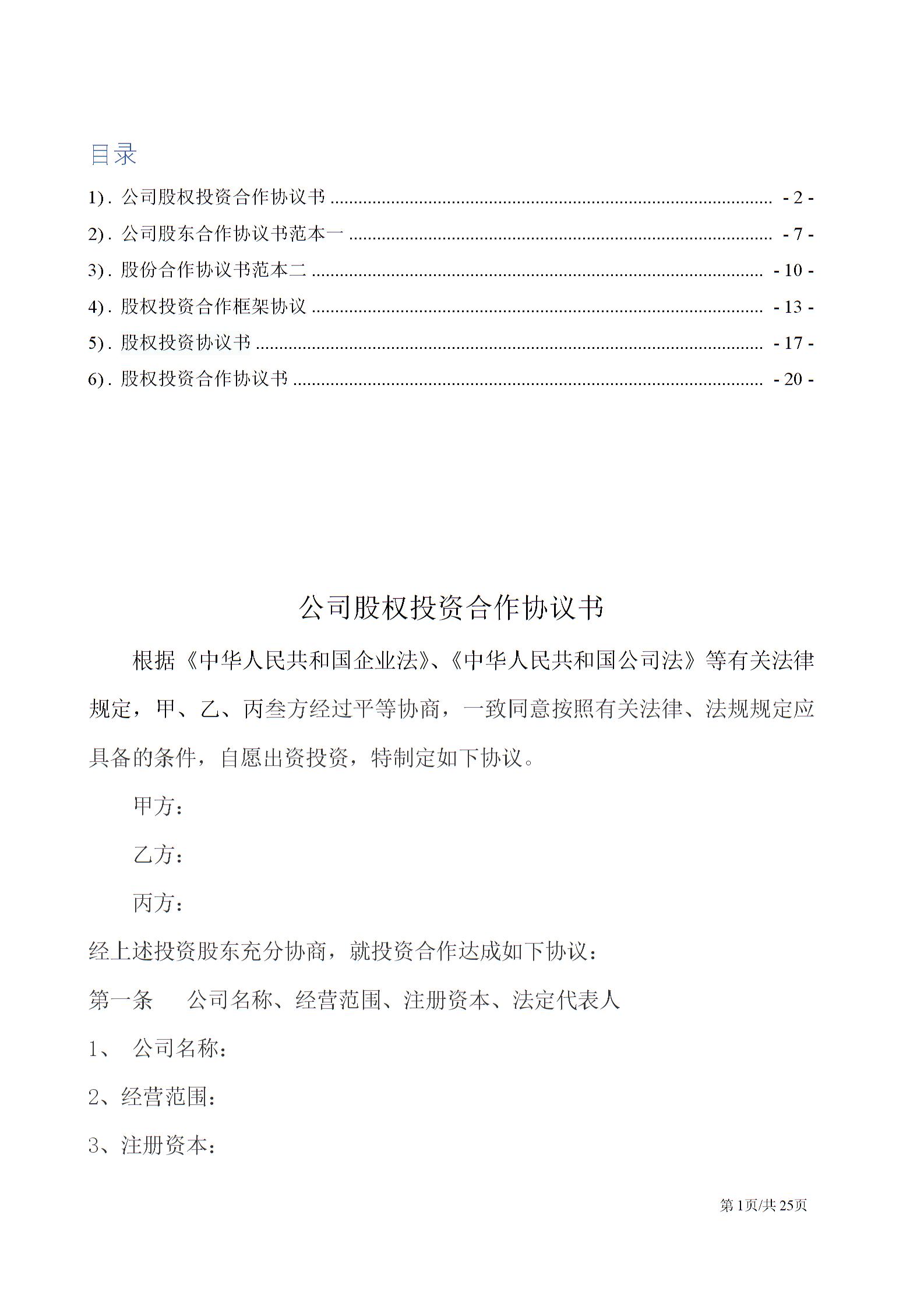 股权投资合作协议书汇编