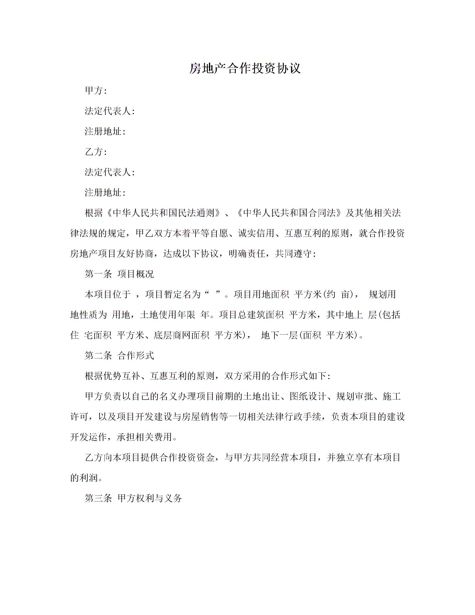 房地产合作投资协议