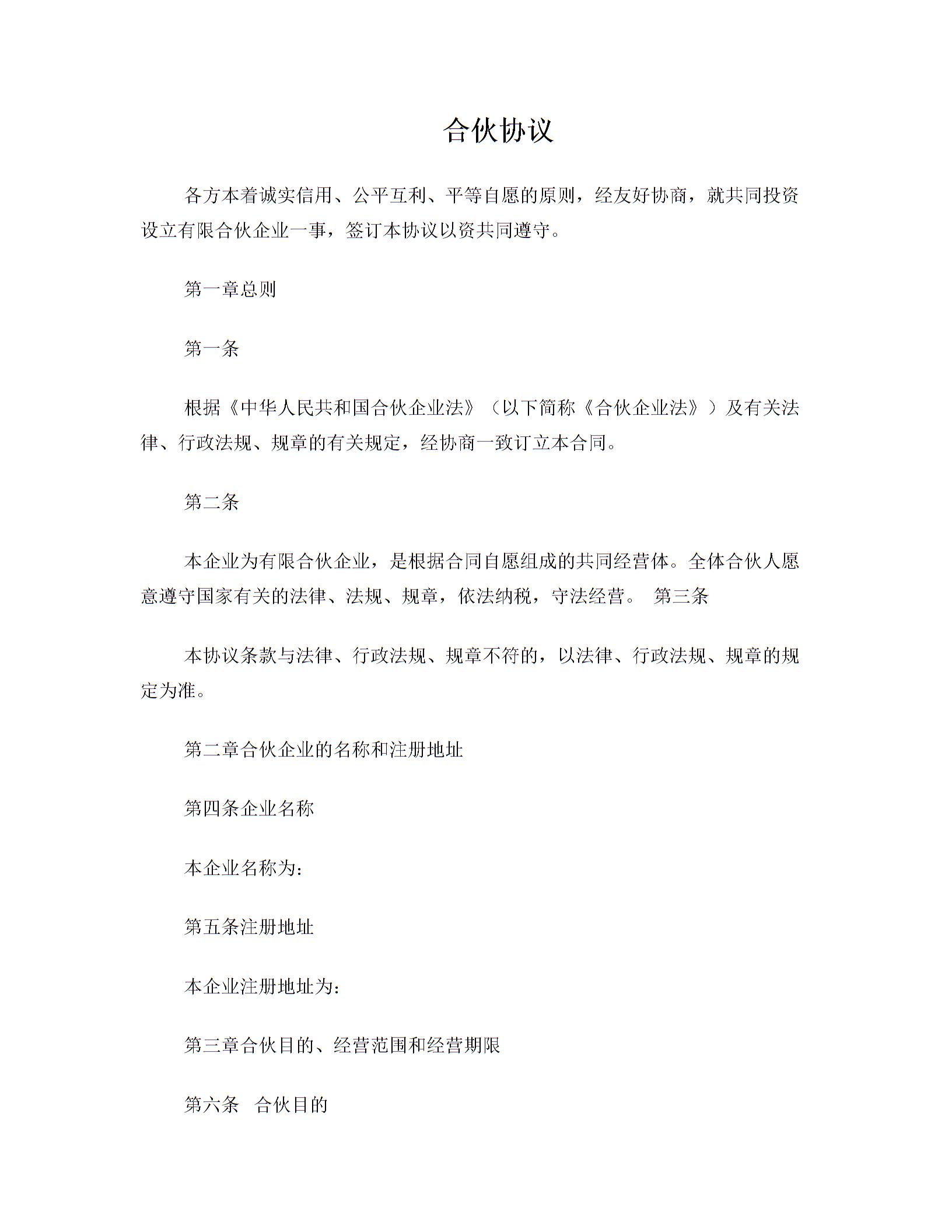 投资合伙协议(标准版)