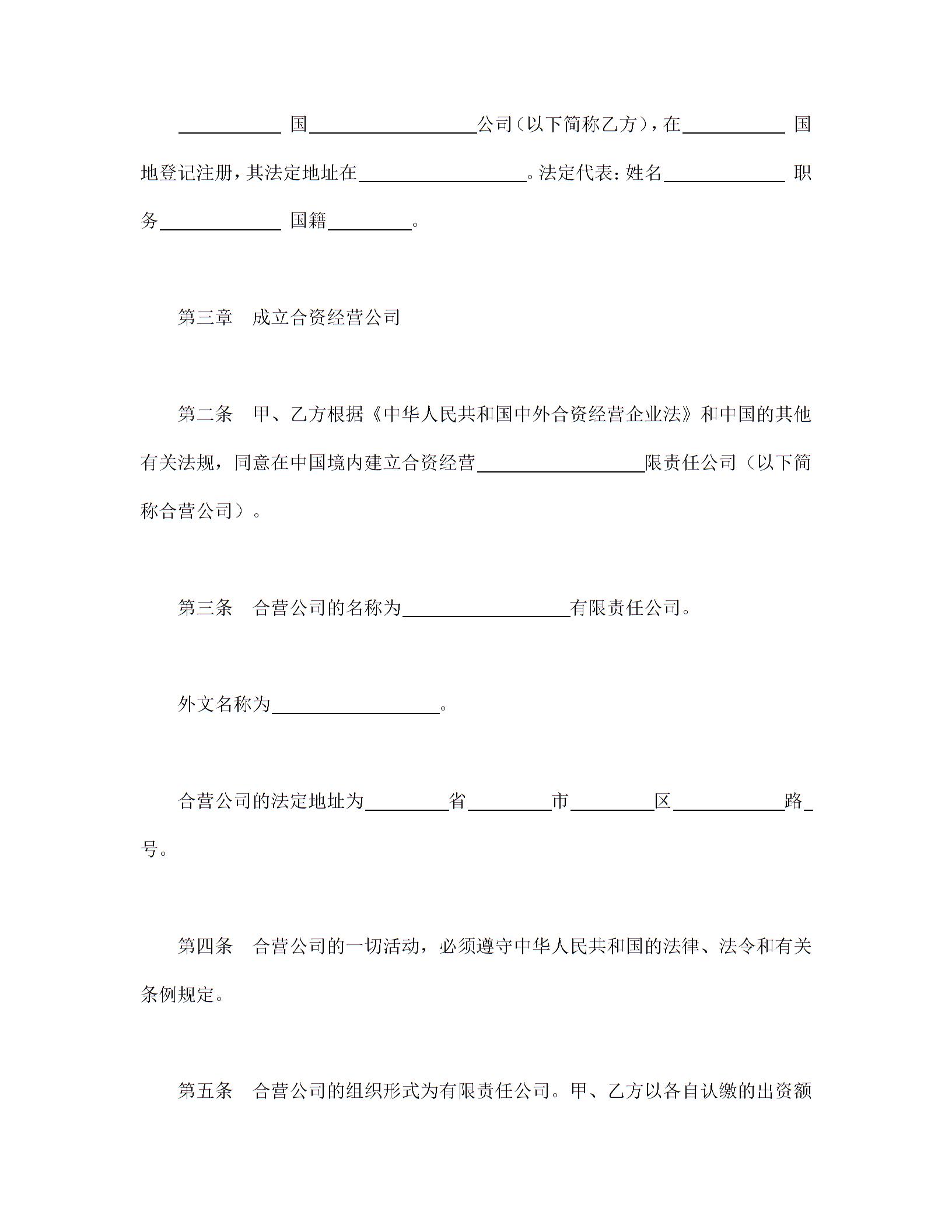 中外合资经营企业合同