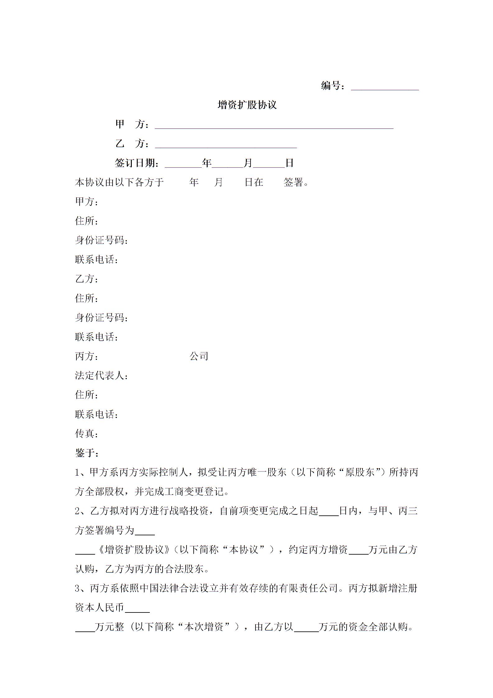 增资扩股合同协议