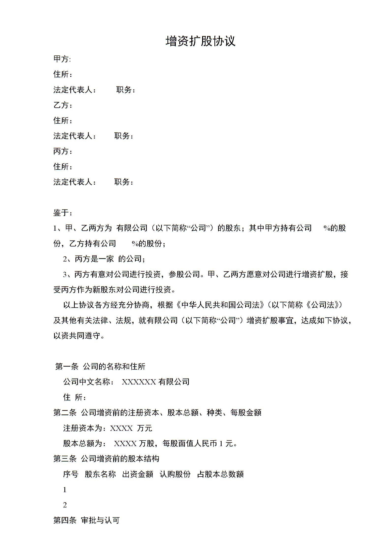 公司增资扩股协议