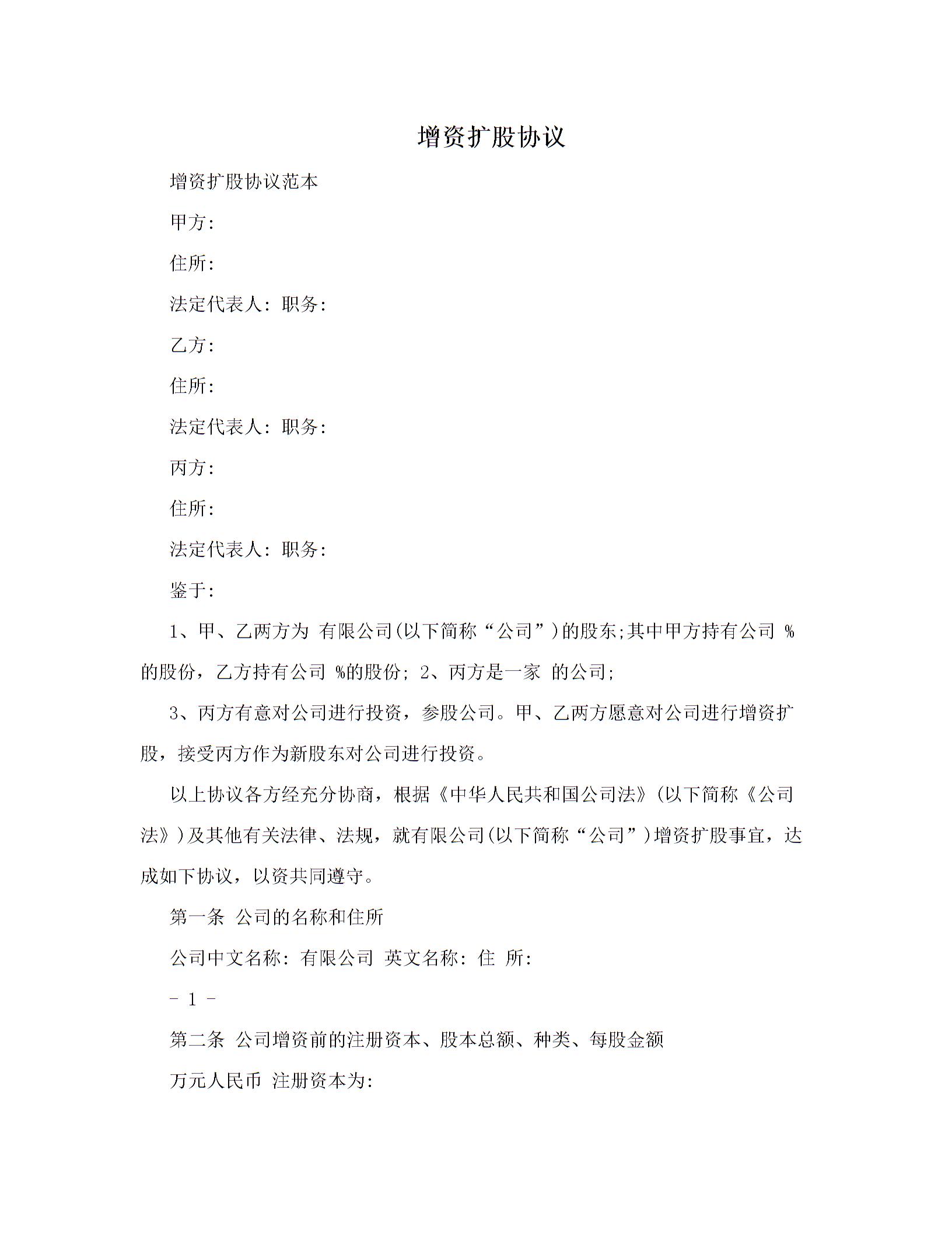 公司增资扩股协议