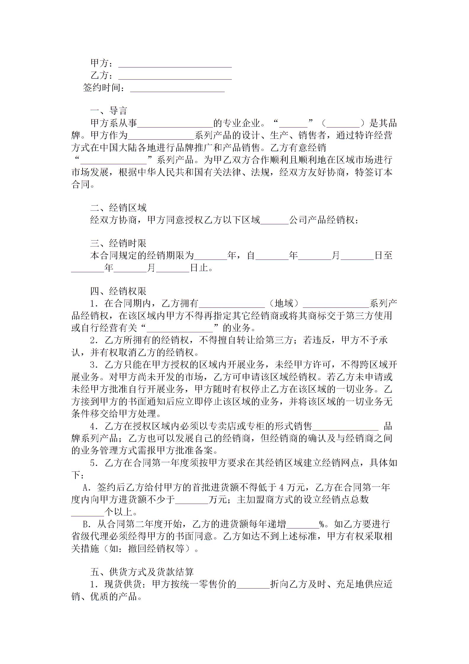 专卖店加盟合同