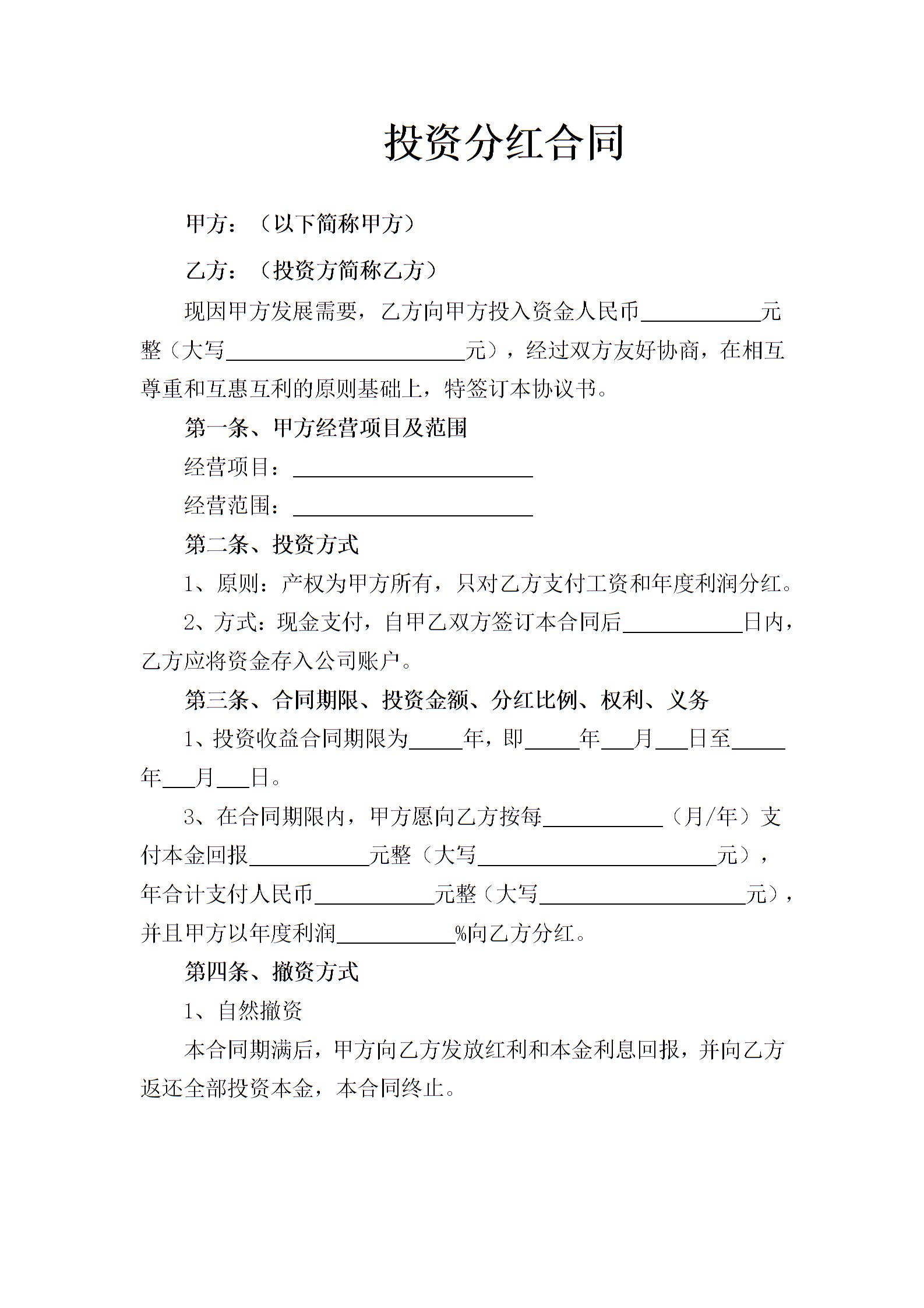投资分红合同