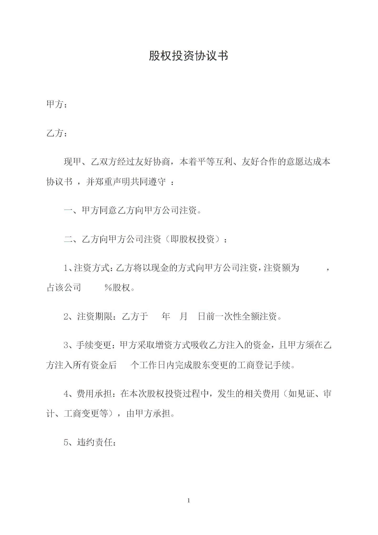 股权投资协议书