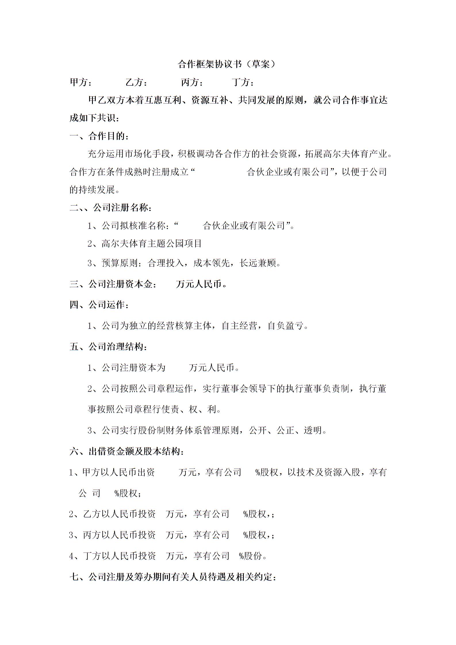 合伙企业投资框架协议书