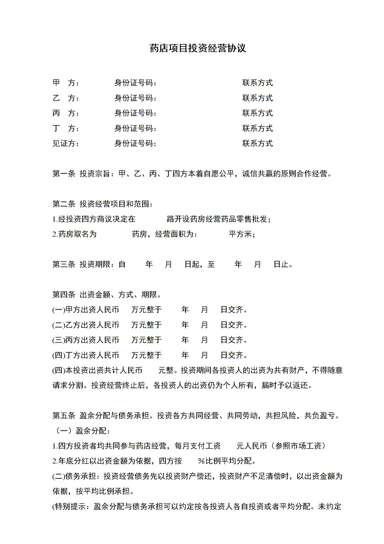 药店项目投资经营协议