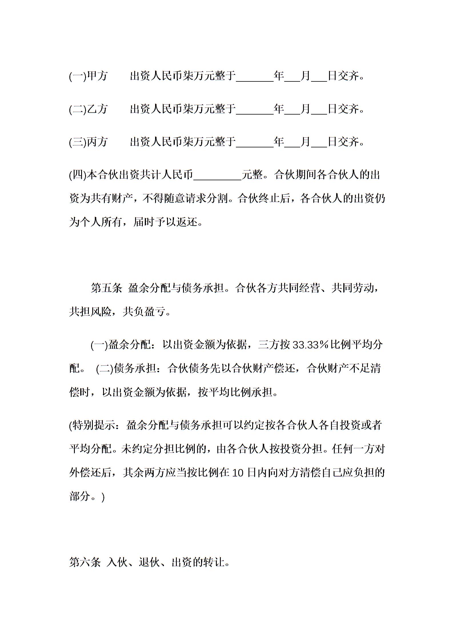 三方投资合伙协议书示范文本