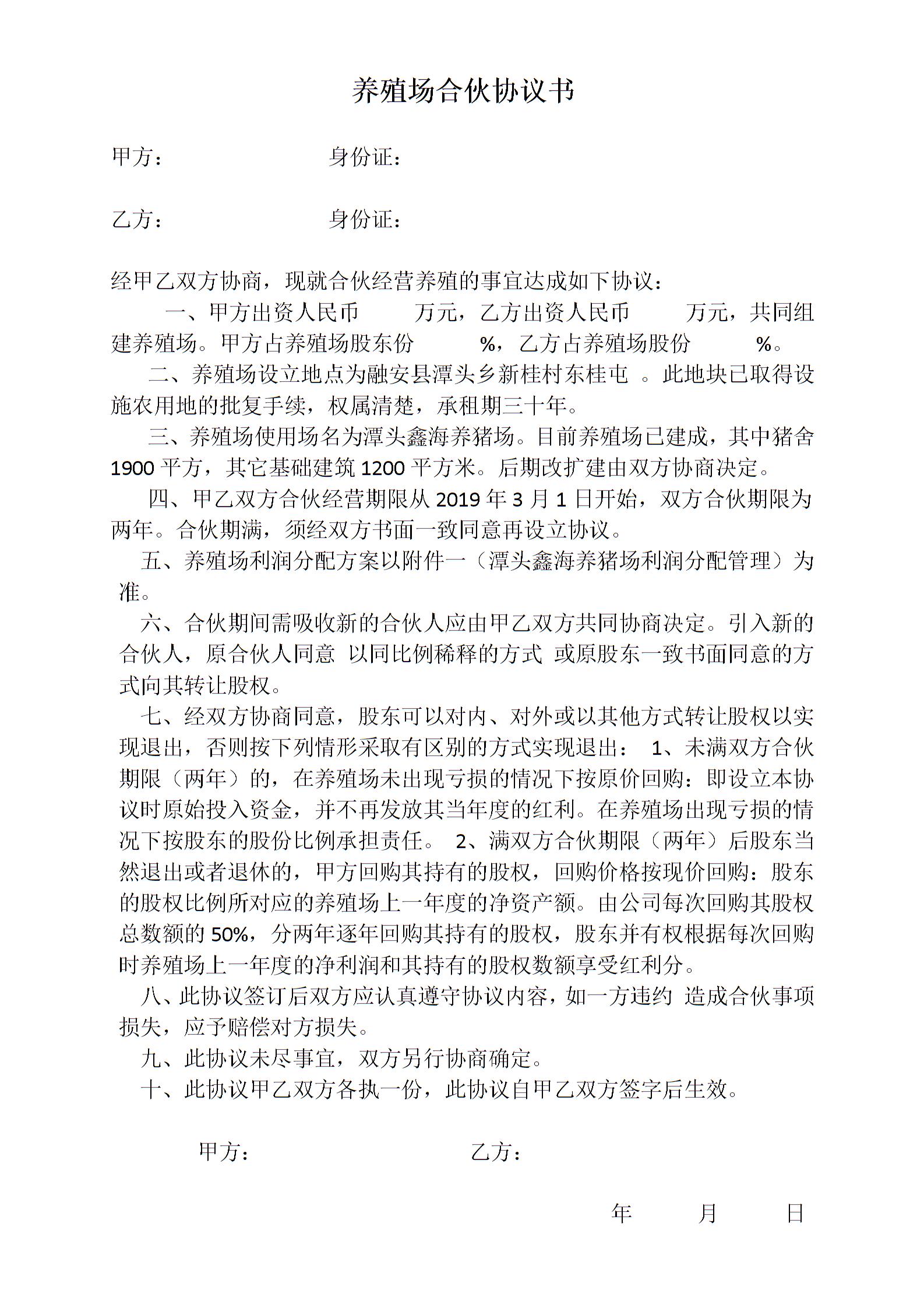 养殖场合伙协议书