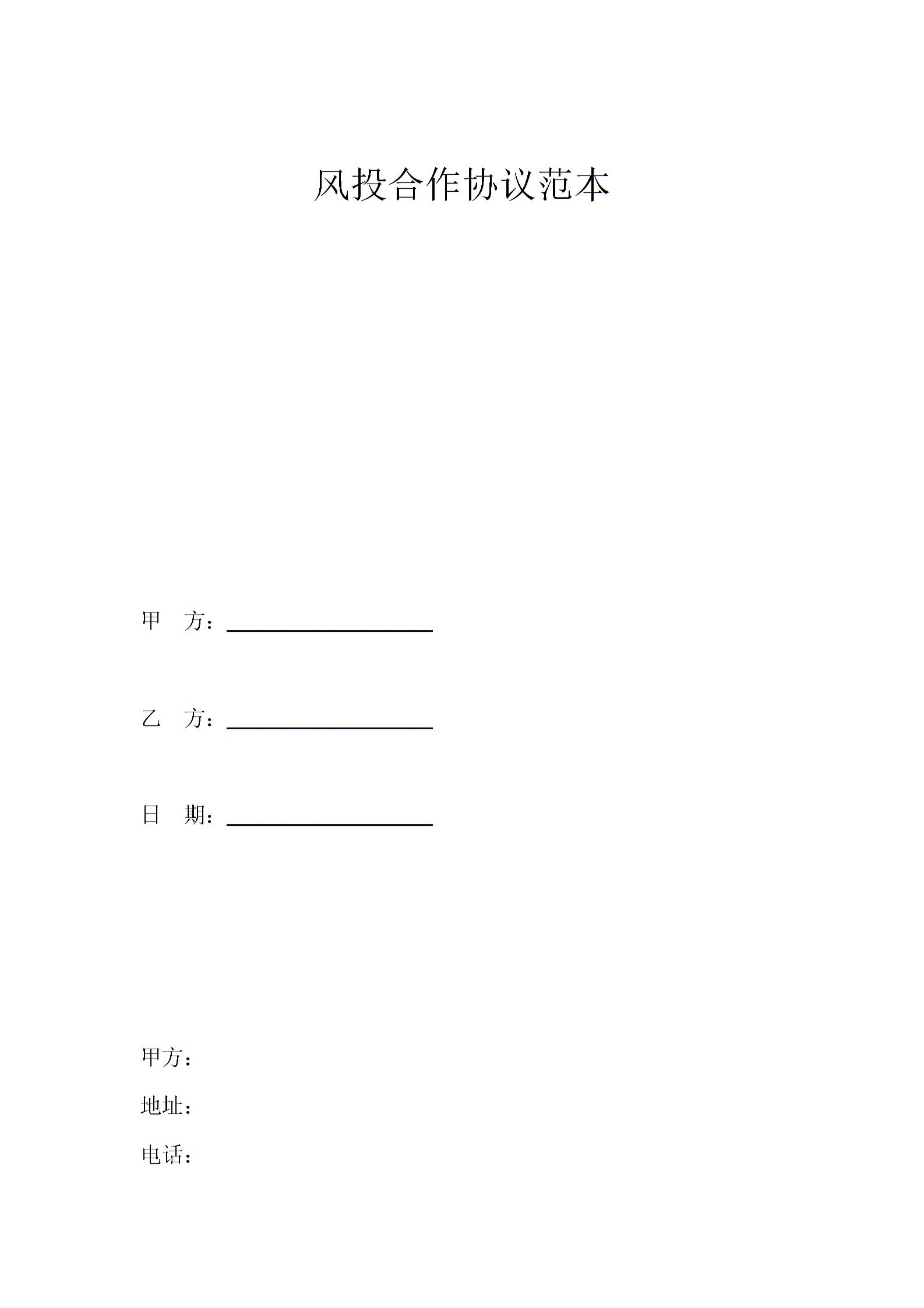 风投合作协议范本 新