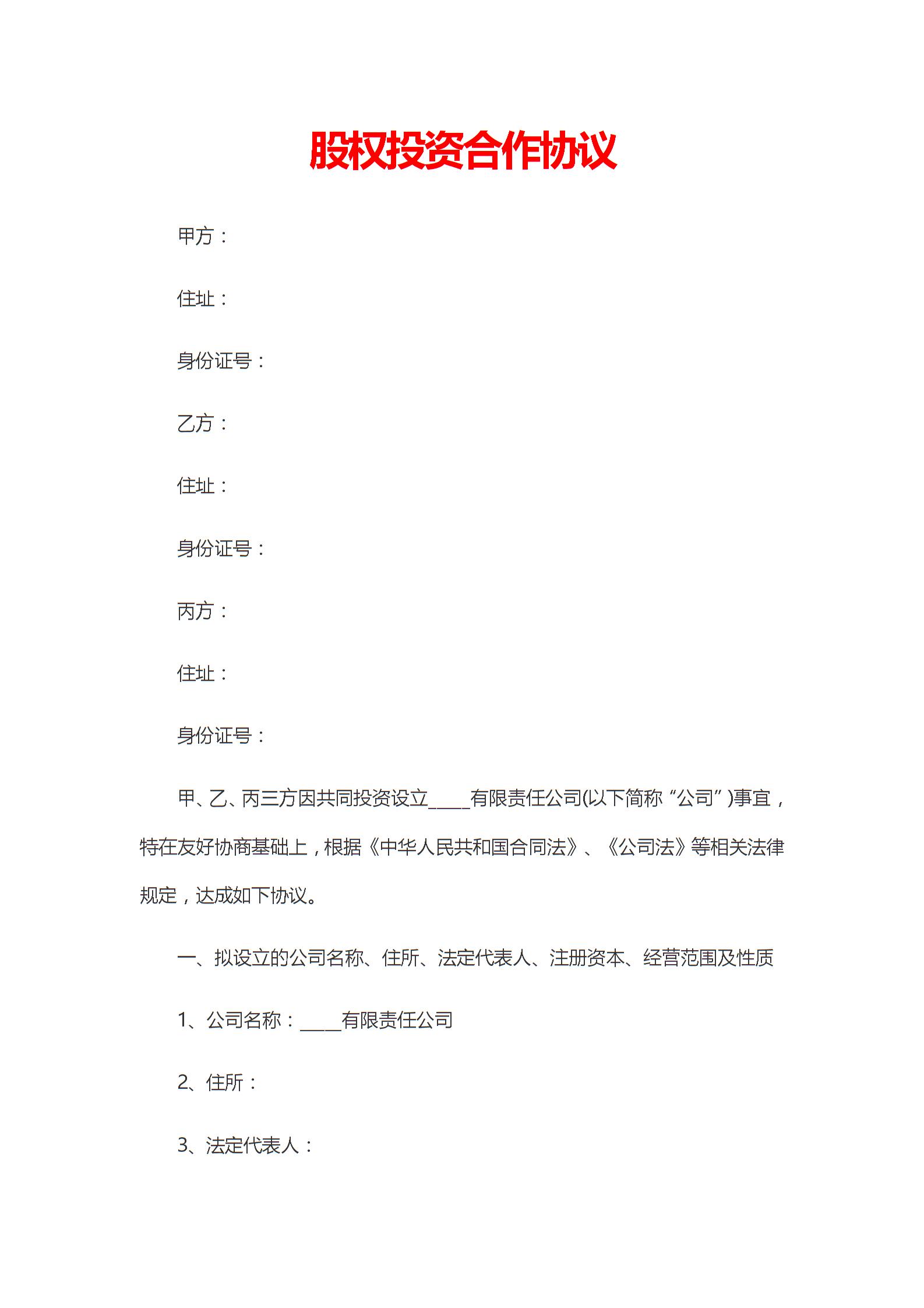 股权投资合作协议