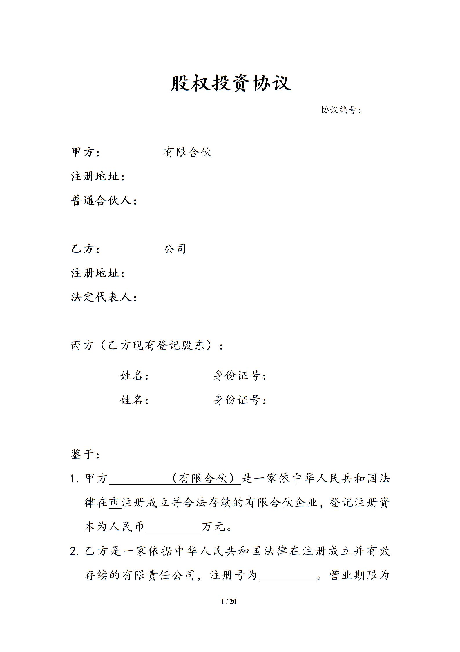 股权投资协议范本
