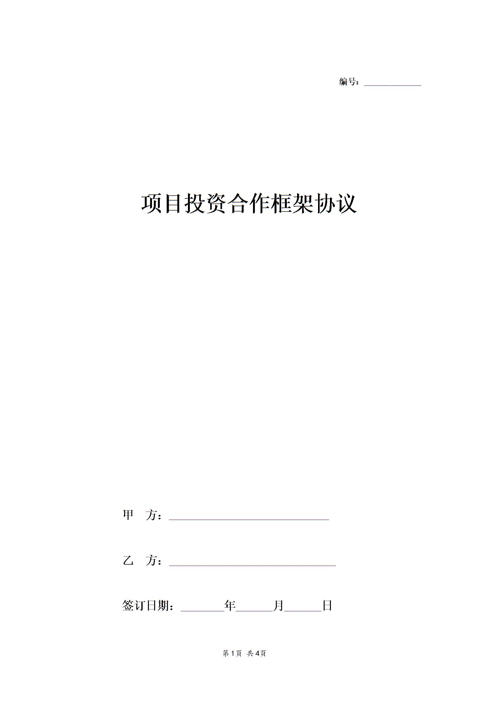 项目投资合作框架协议