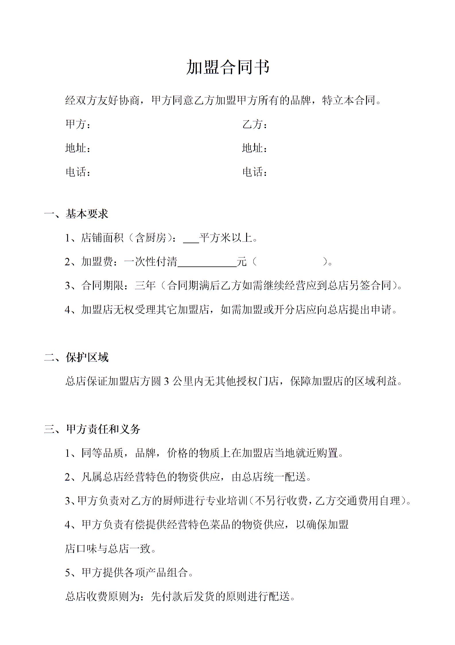 餐饮行业加盟合同书范本