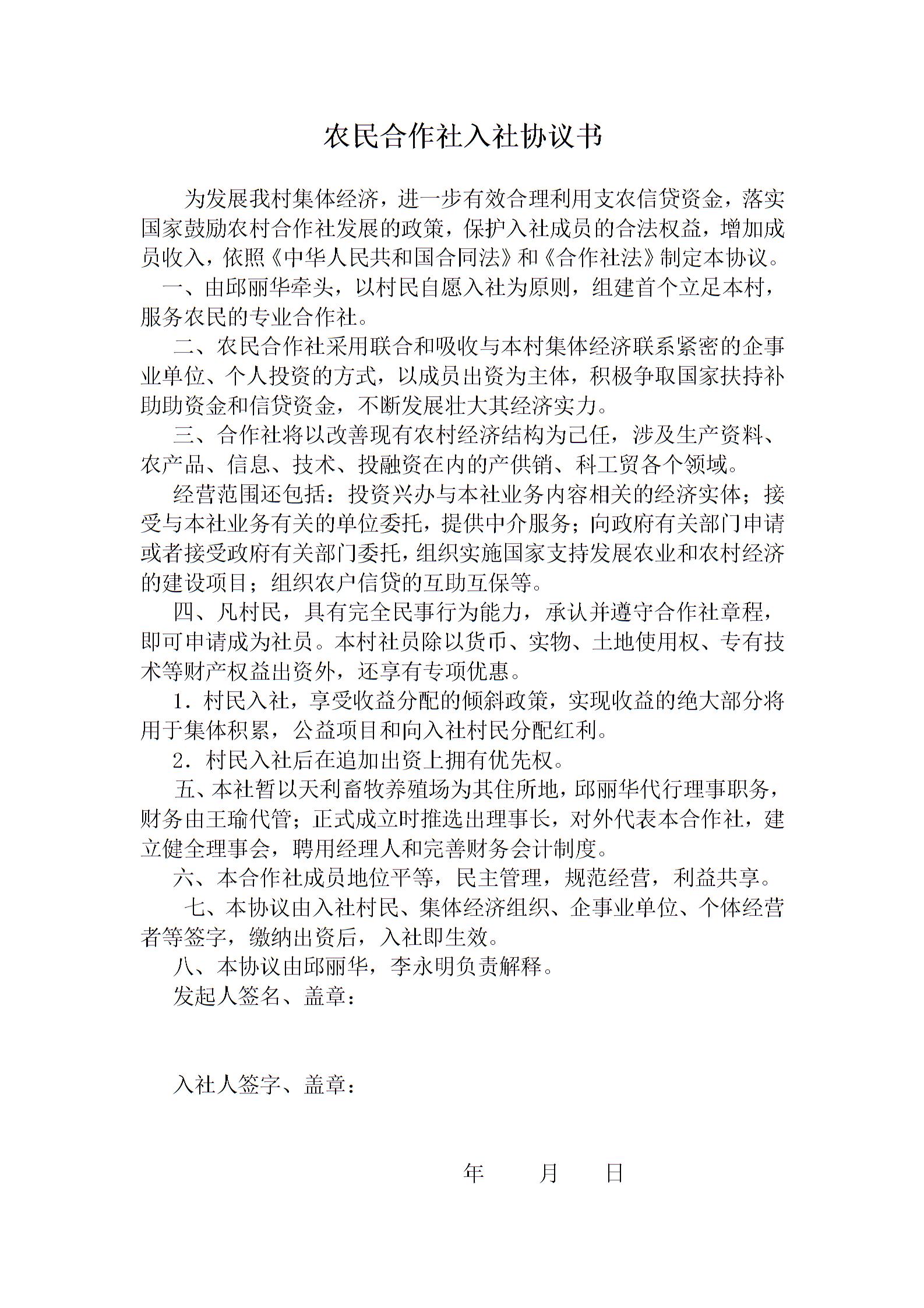 农民合作社入社协议书