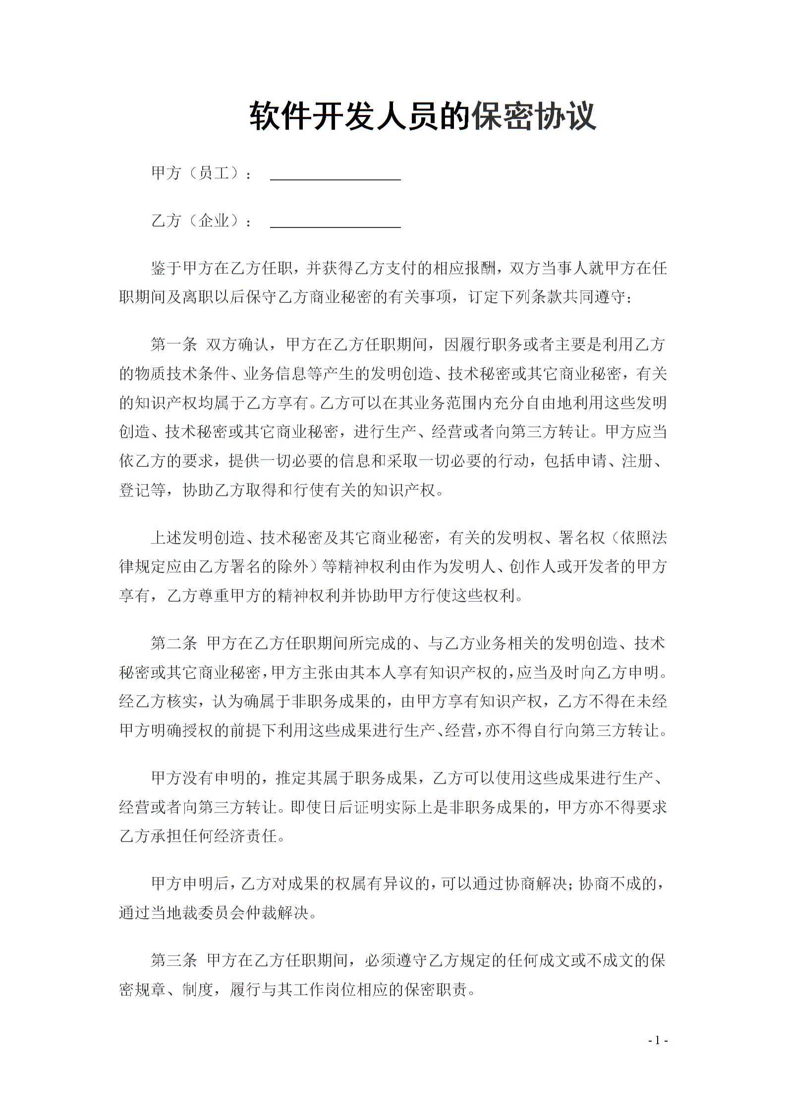 IT开发人员的保密协议(通用)模板