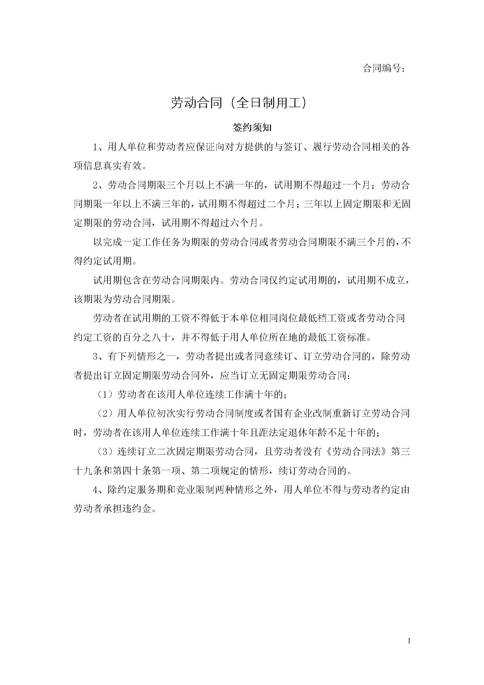劳动合同(全日制用工)