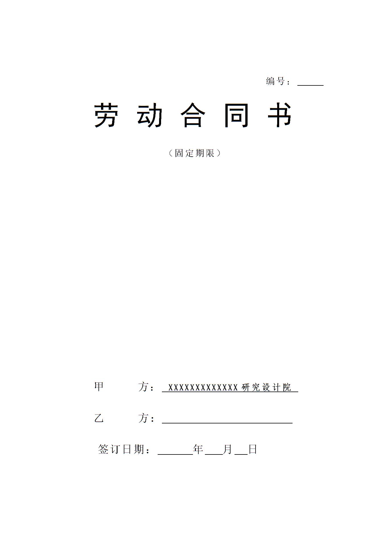 设计院与职工劳动合同书样本模板