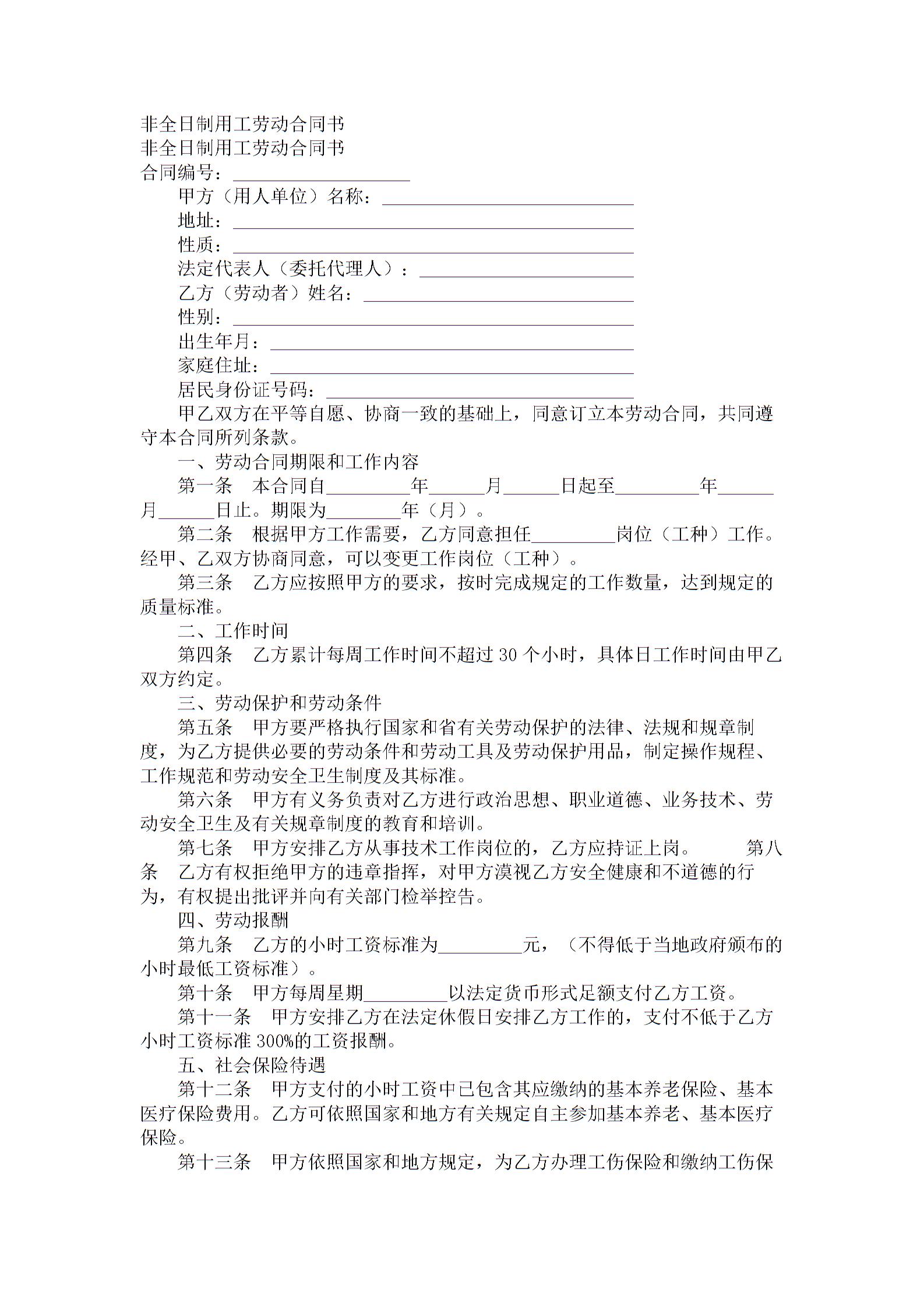72【2017年最新合同模板】非全日制用工劳动合同书