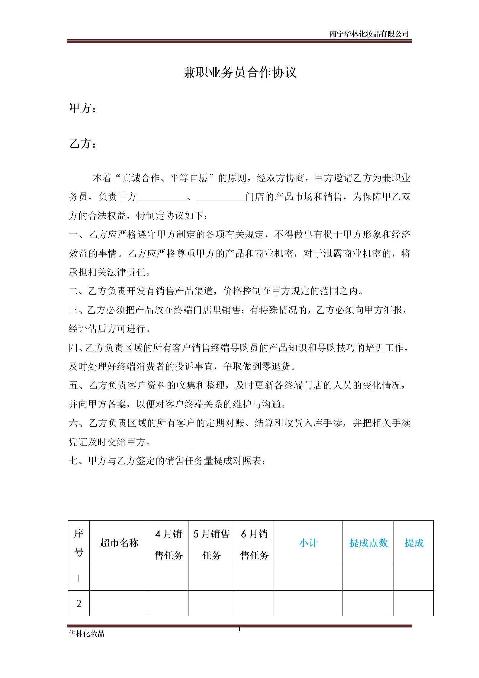兼职业务员合作协议