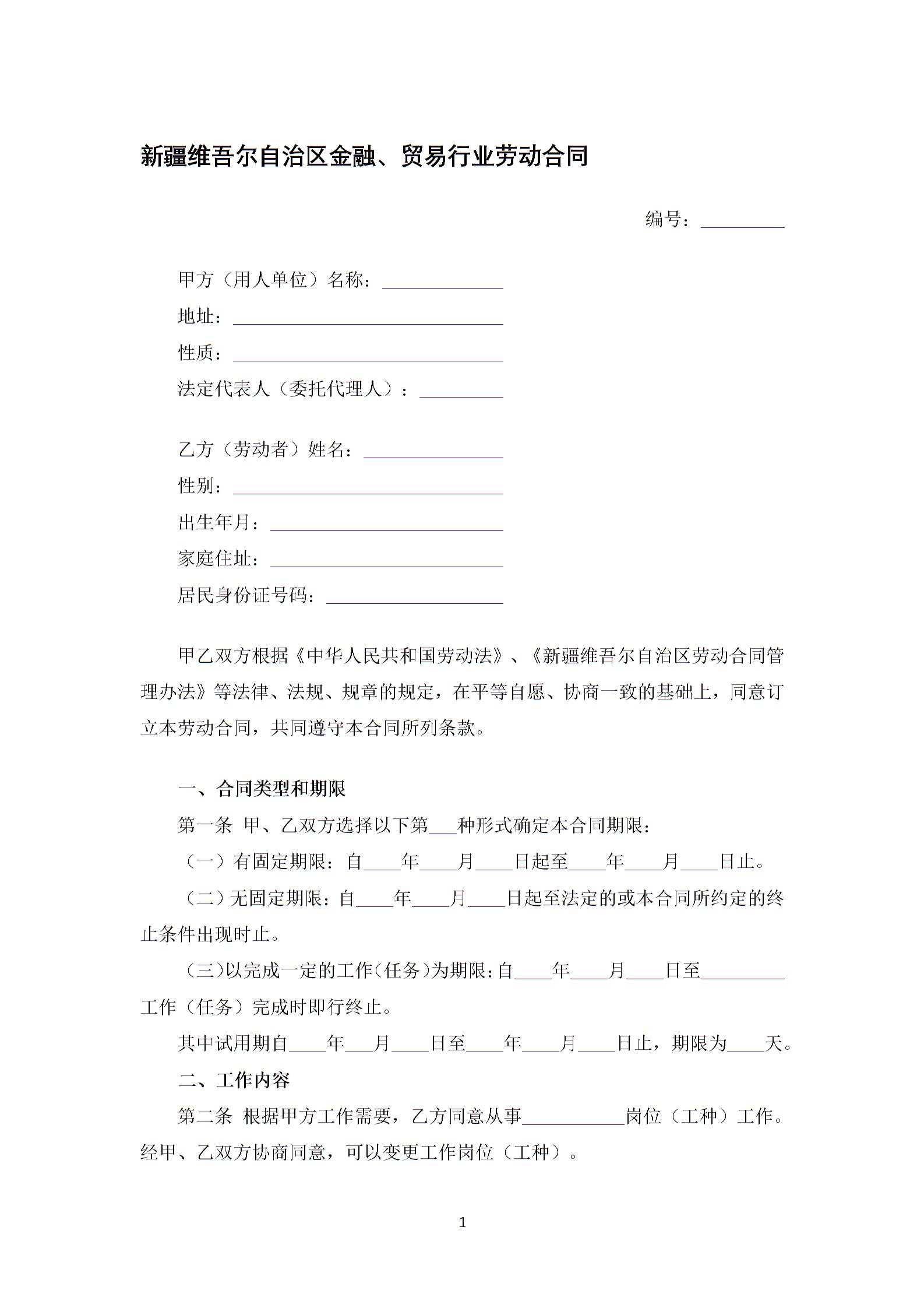 新疆维吾尔自治区金融、贸易行业劳动合同