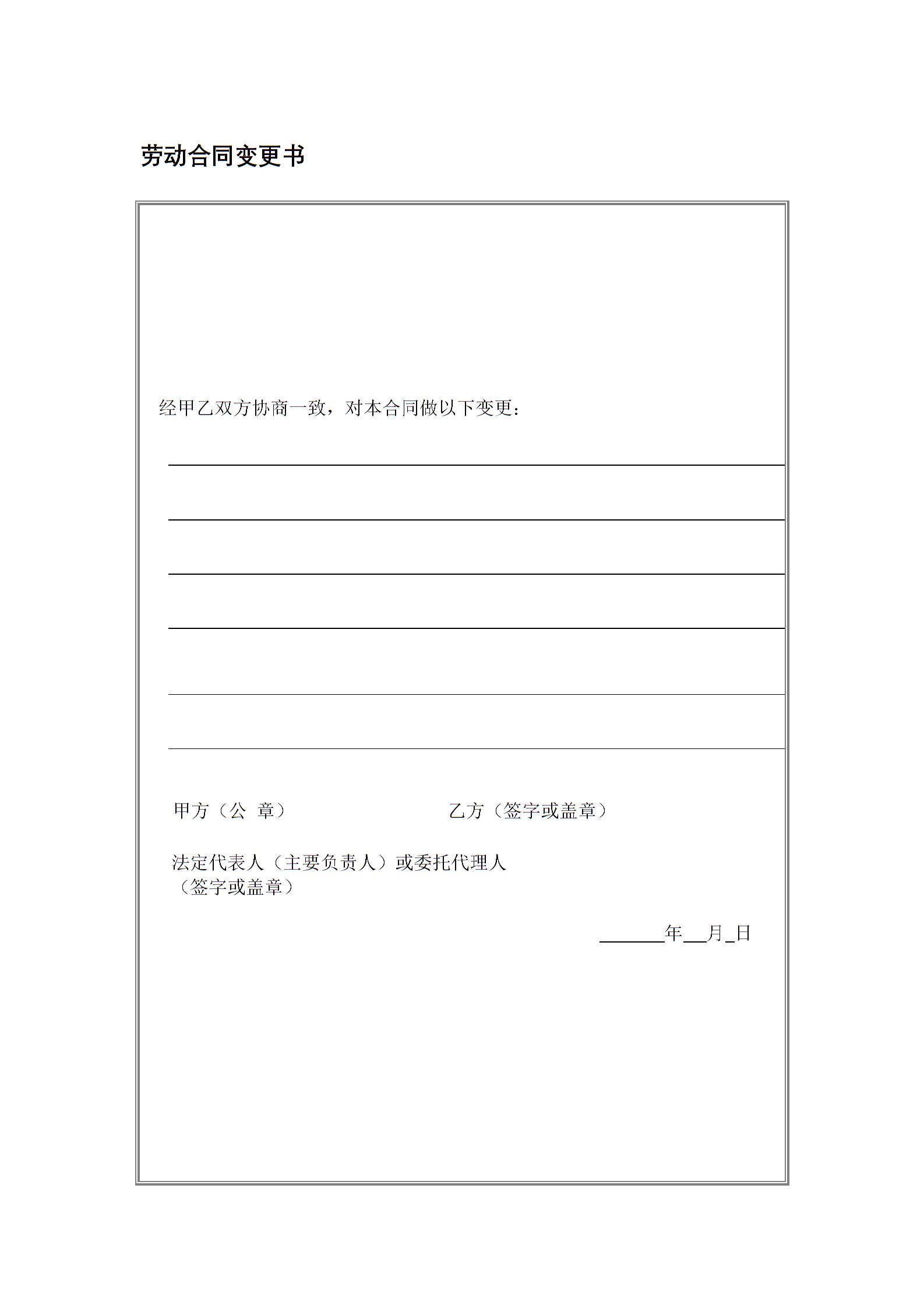 劳动合同变更书