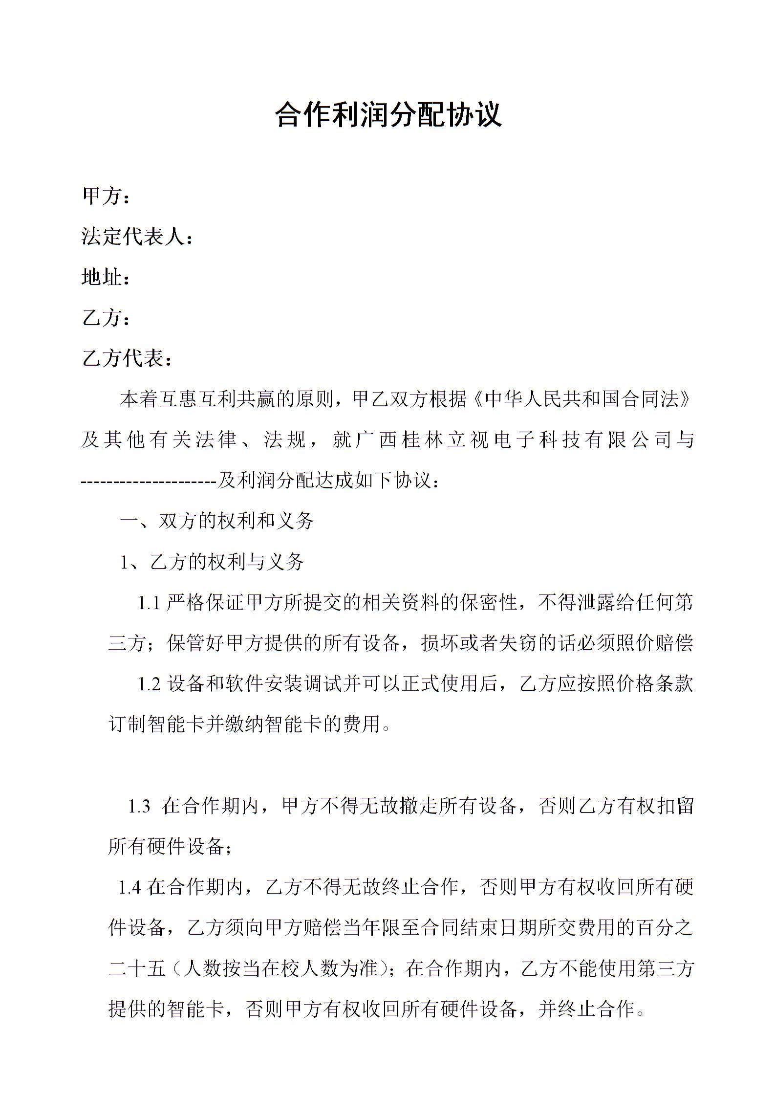 合作经营利润分配协议