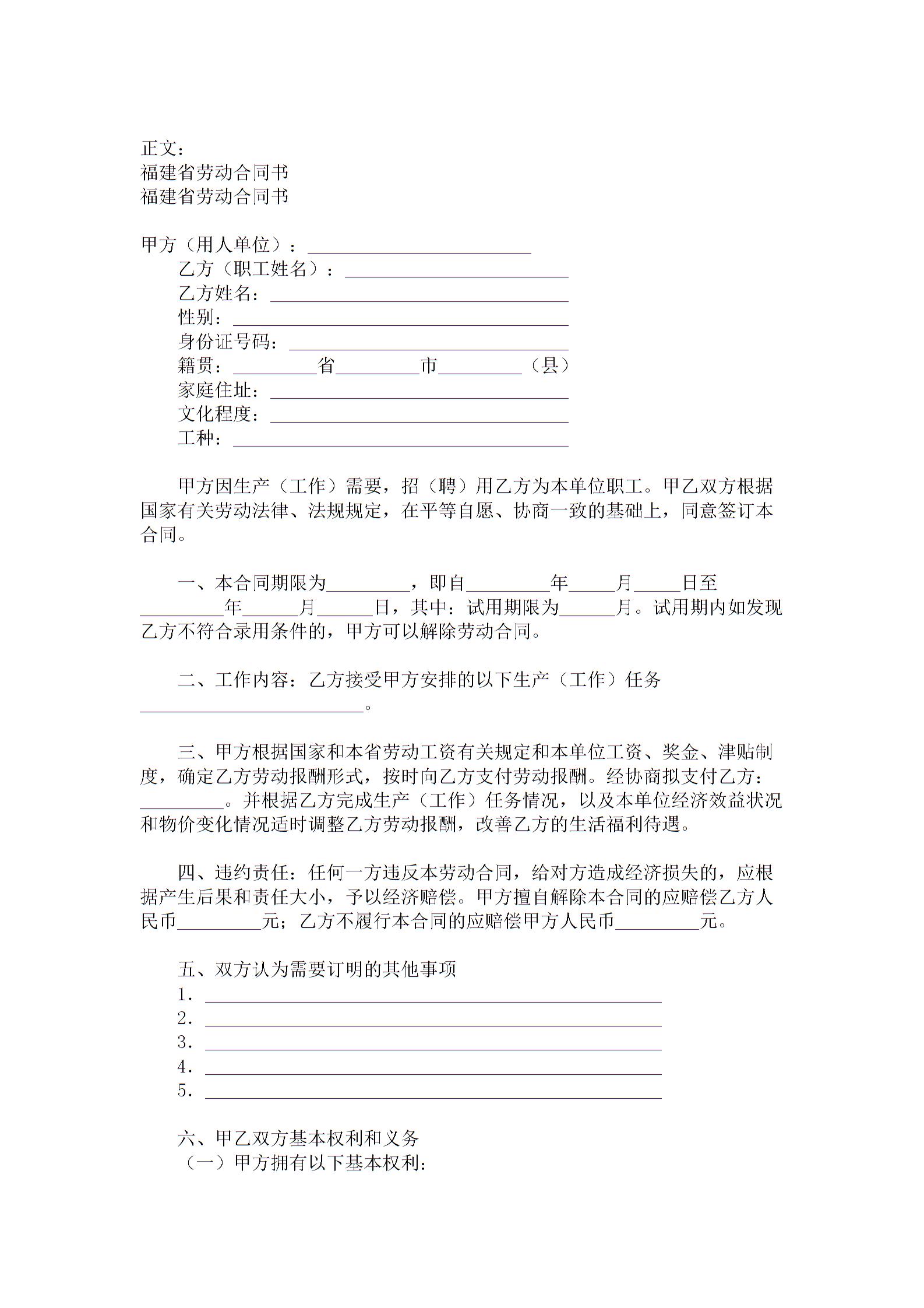 【2017年最新合同模板】福建省劳动合同书范本_格式_样本_样式_协议