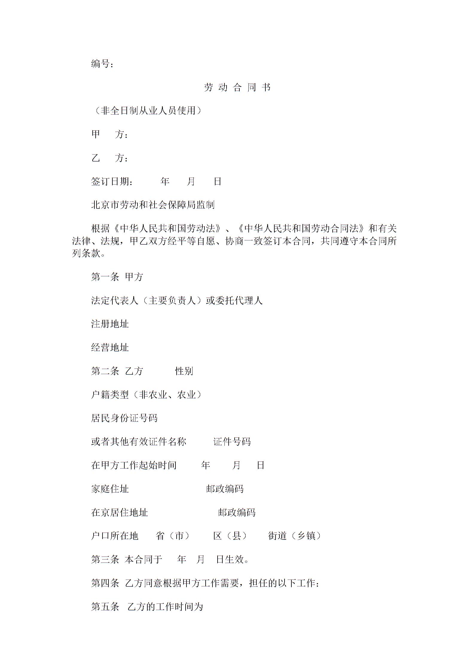 非全日制劳动合同范本(最新的)