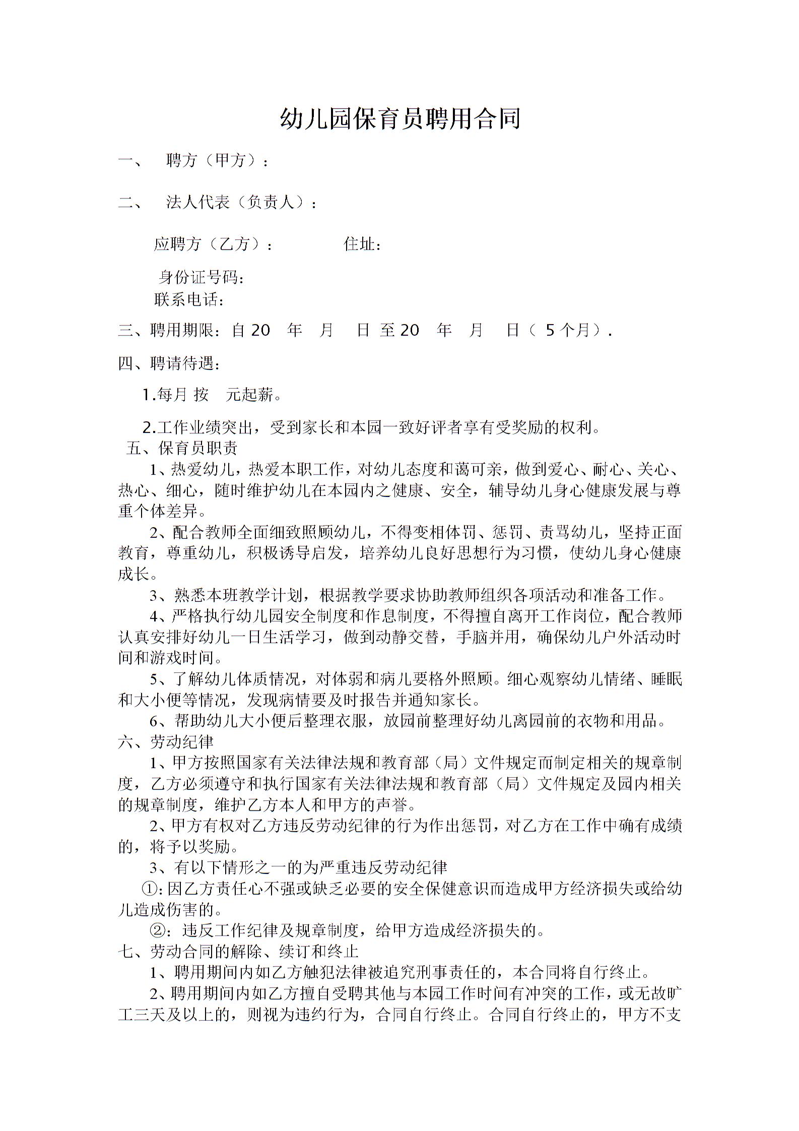 保育员聘用合同