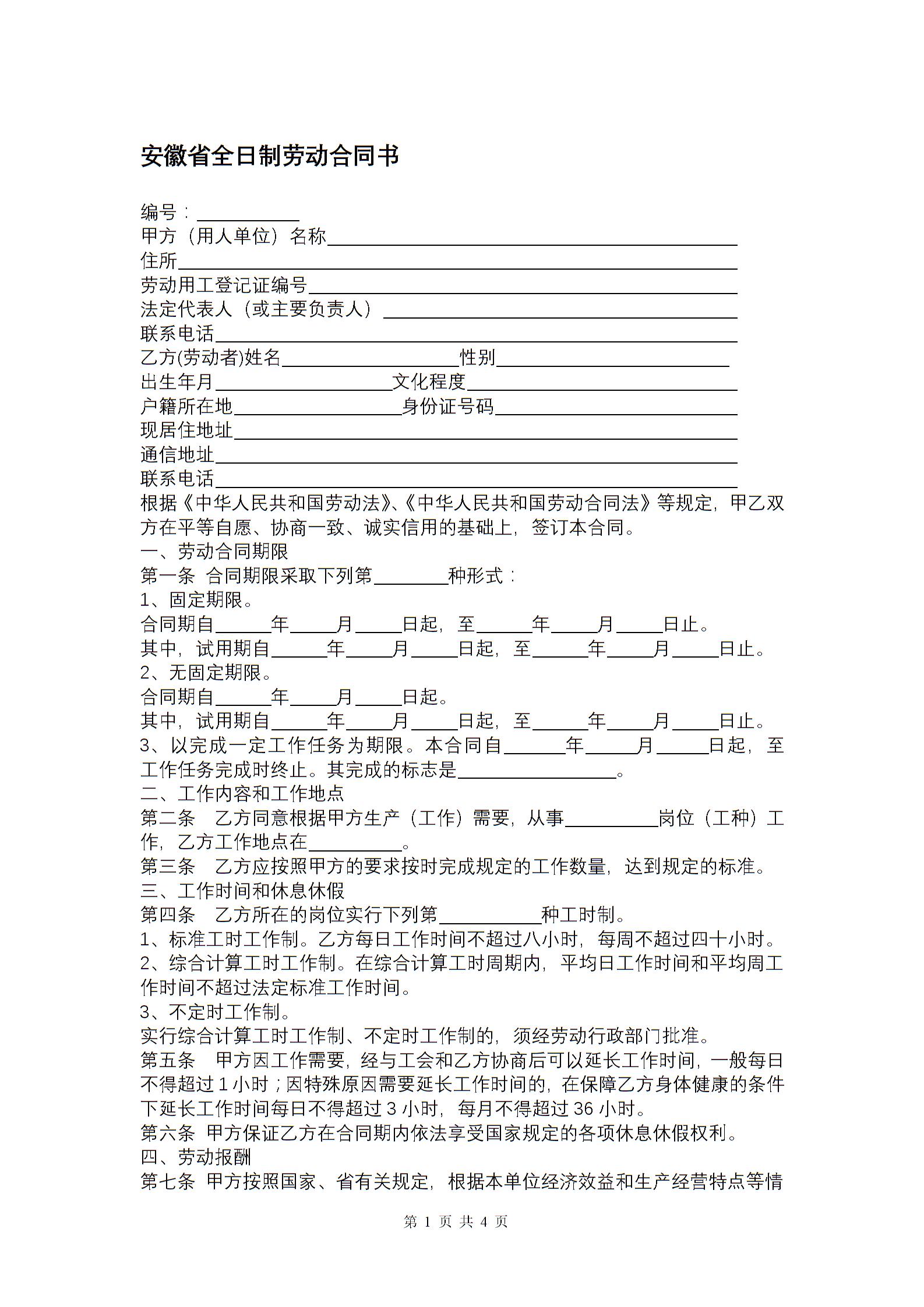 【2017年最新合同模板】福建省劳动合同书范本_格式_样本_样式_协议
