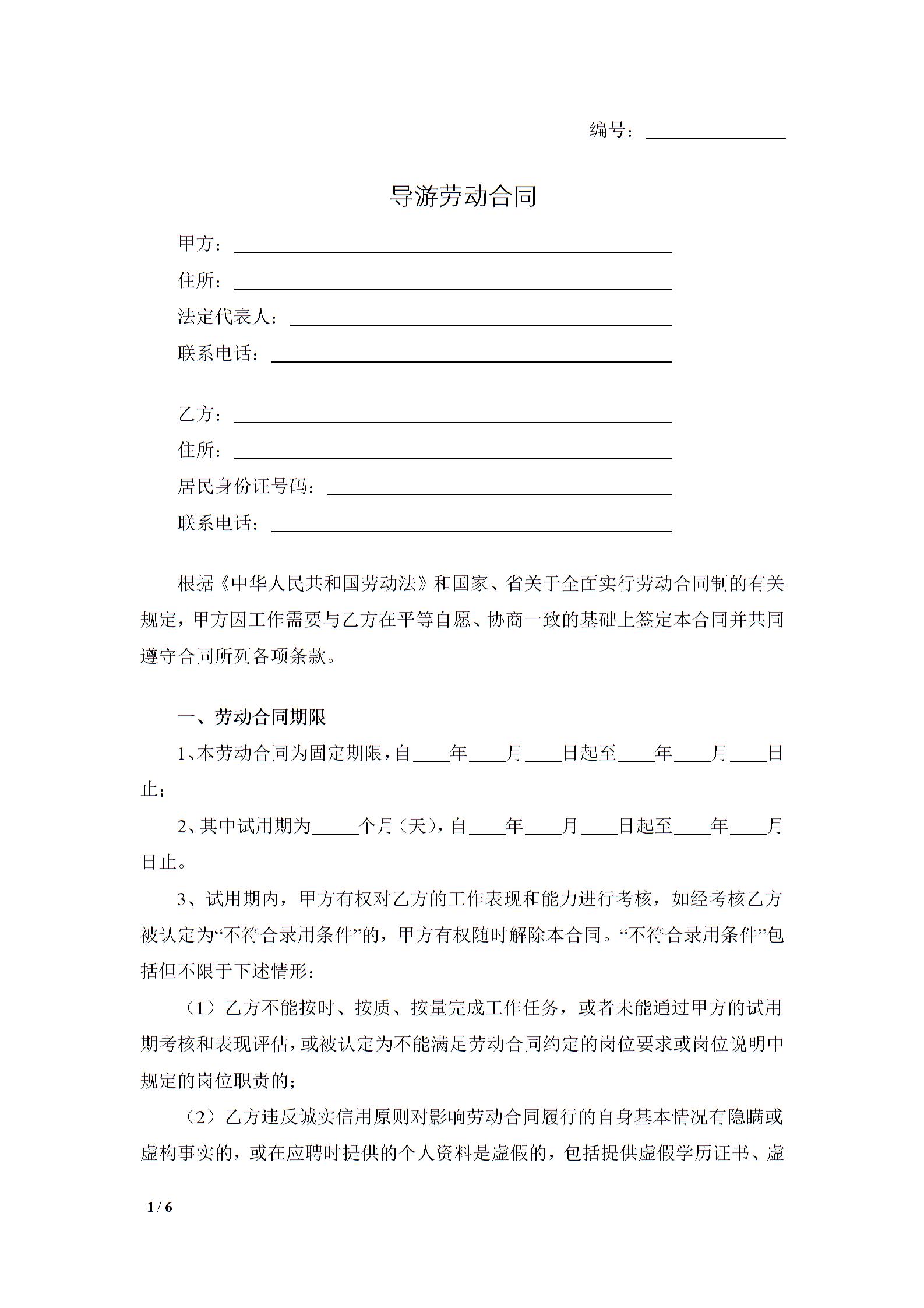 导游劳动合同
