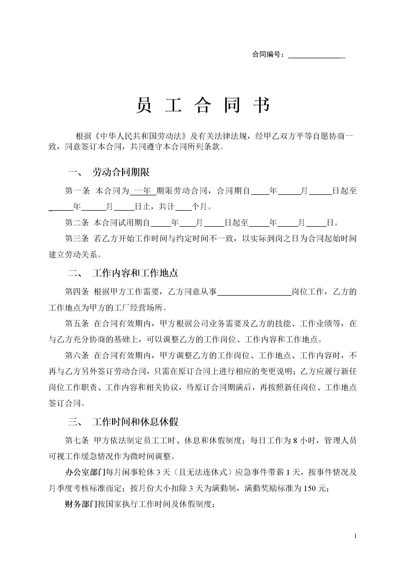 工厂员工劳动合同范本2015模板