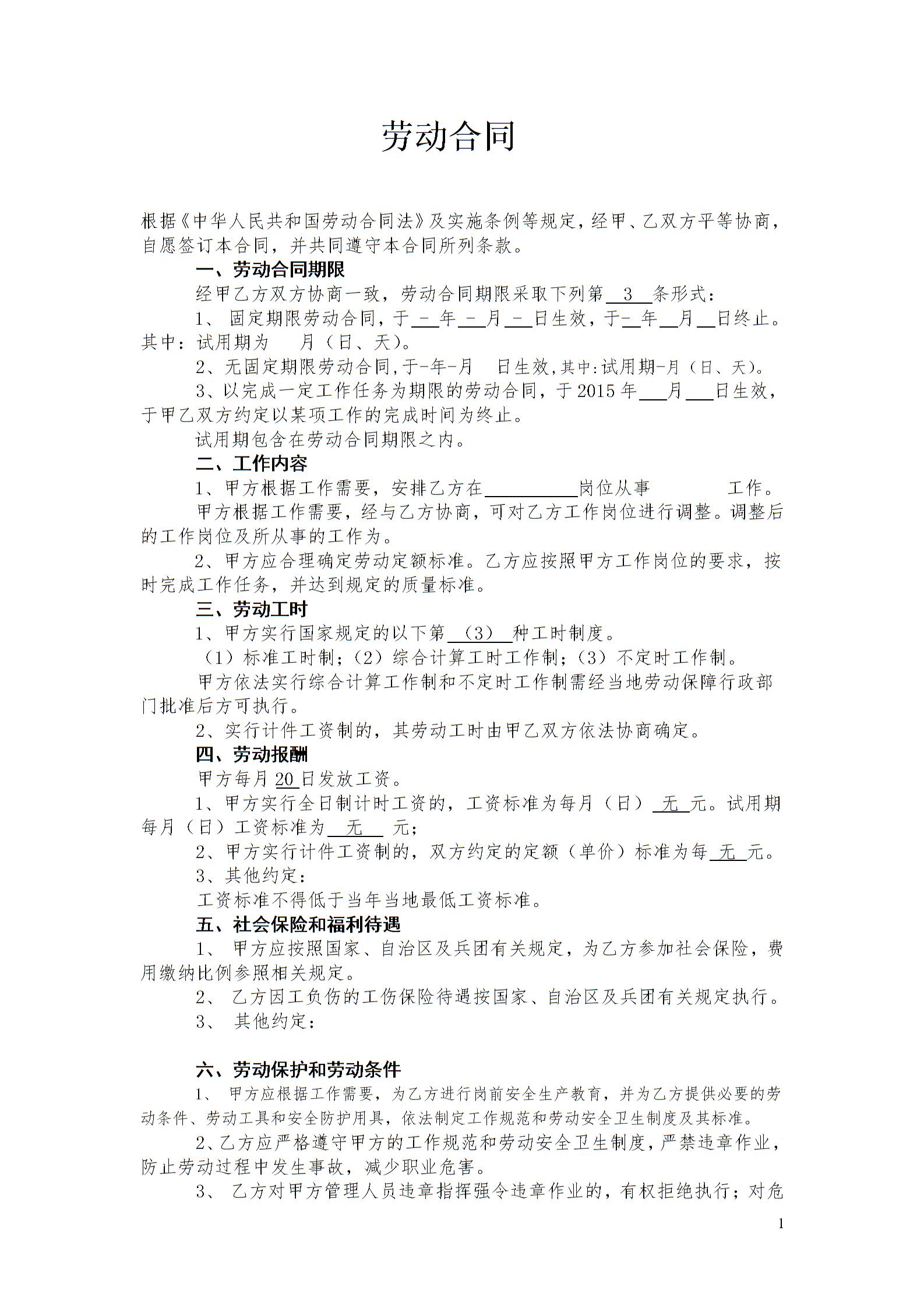 【2017年最新合同模板】福建省劳动合同书范本_格式_样本_样式_协议