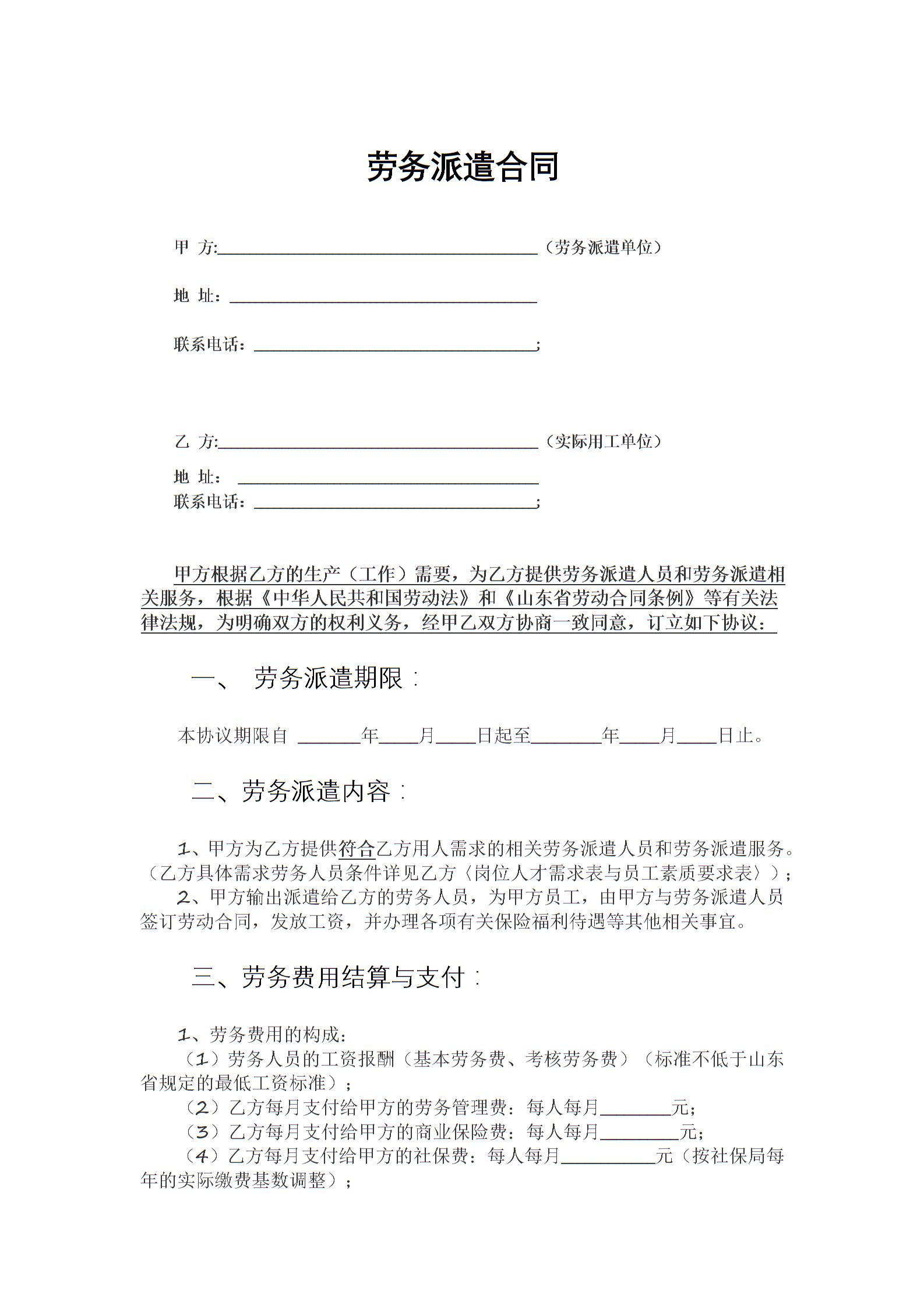 人力劳务派遣合同(标准本)