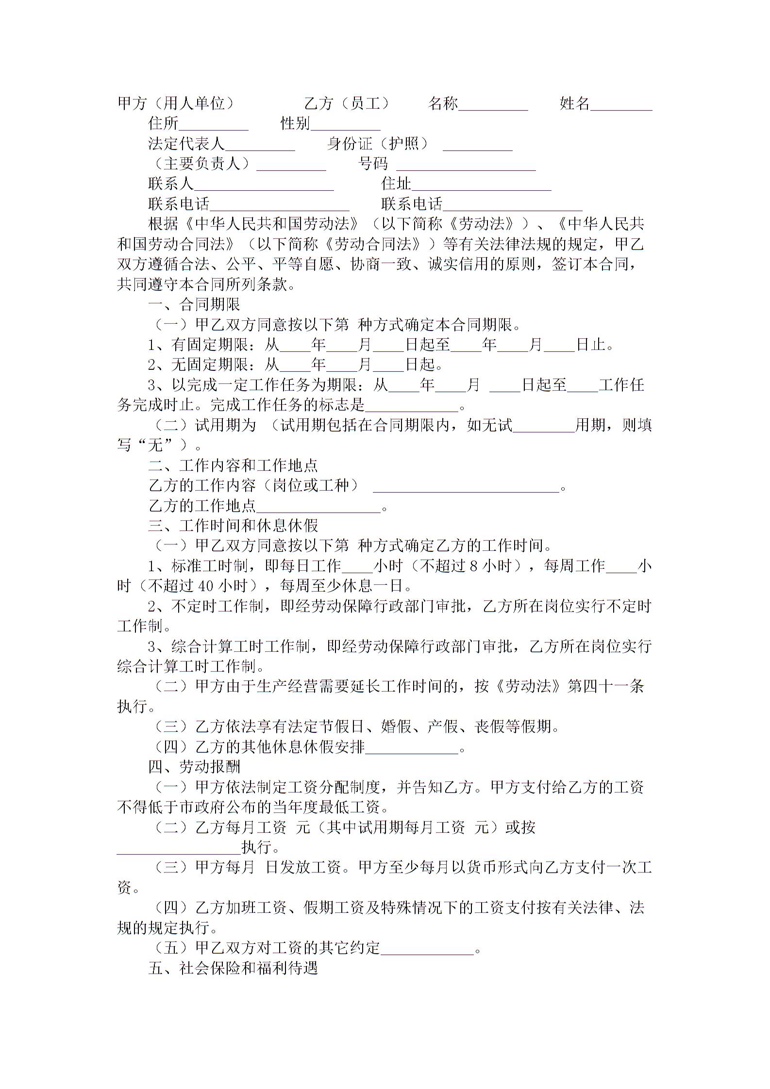 【2017年最新合同模板】福建省劳动合同书范本_格式_样本_样式_协议