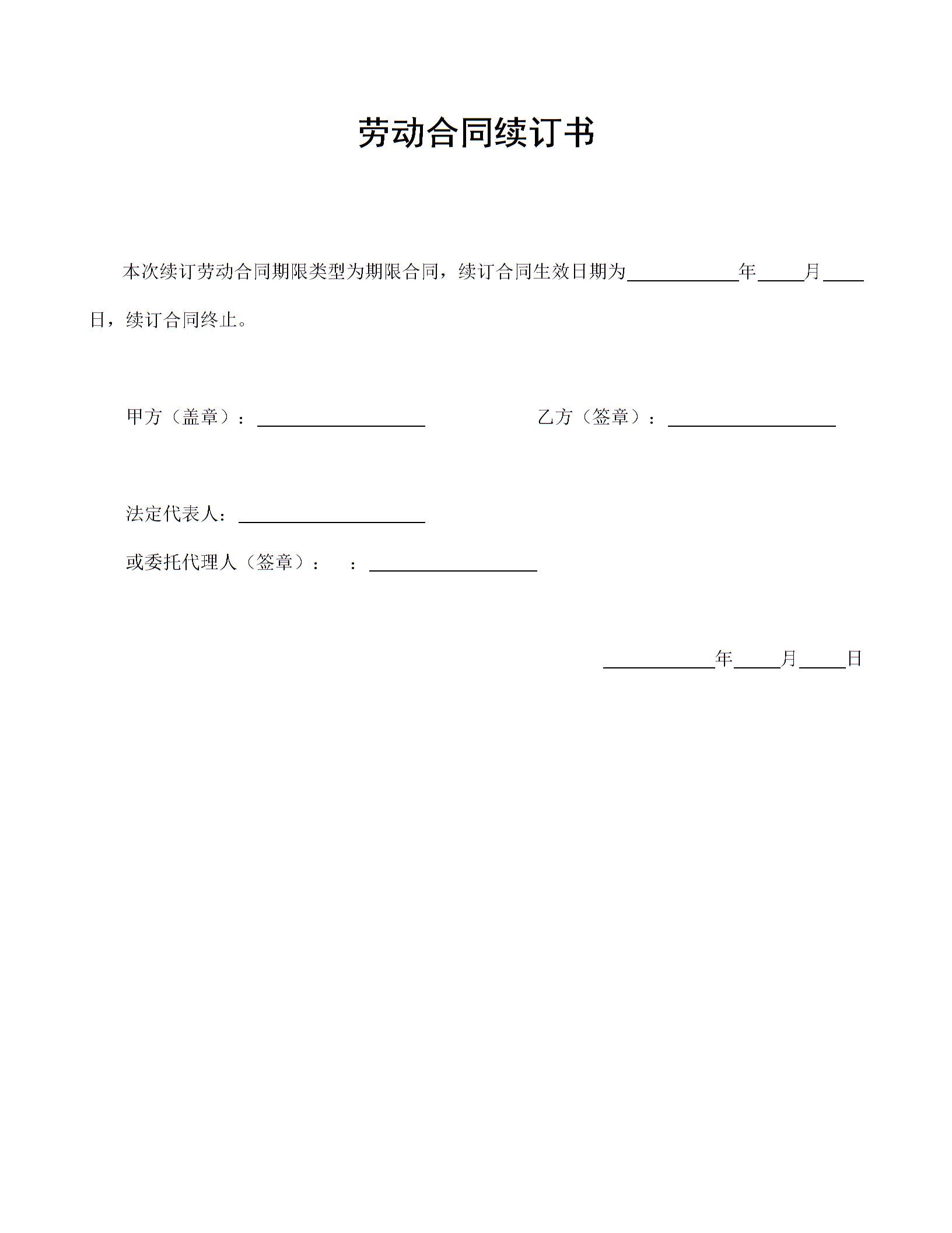 劳动合同续订书(可编辑模板)
